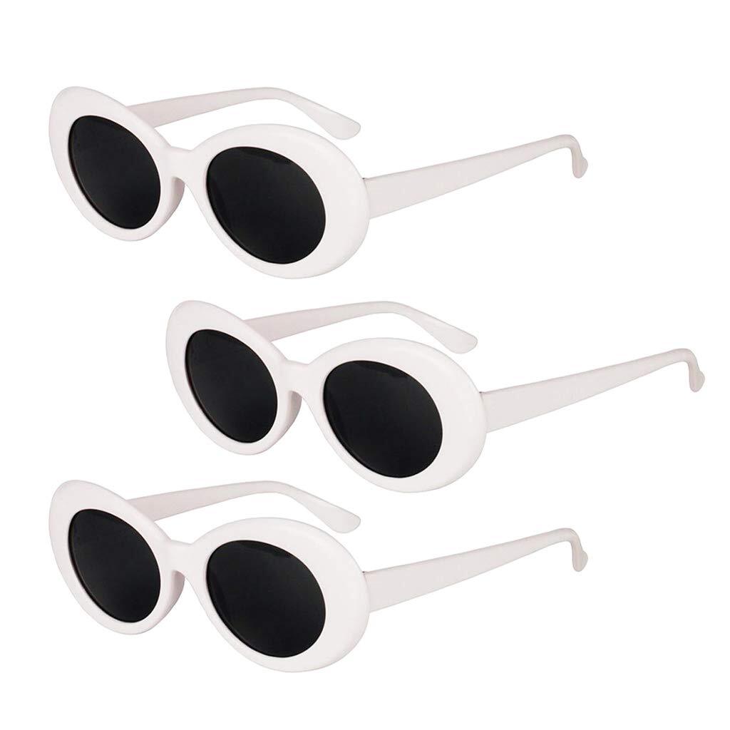 dailymall 3ピースクラウトゴーグルサングラスオーバルレンズ、レトロな大胆なMod、厚いフレームヴィンテージ80年代のラッパーのドレスアップ-ホワイト