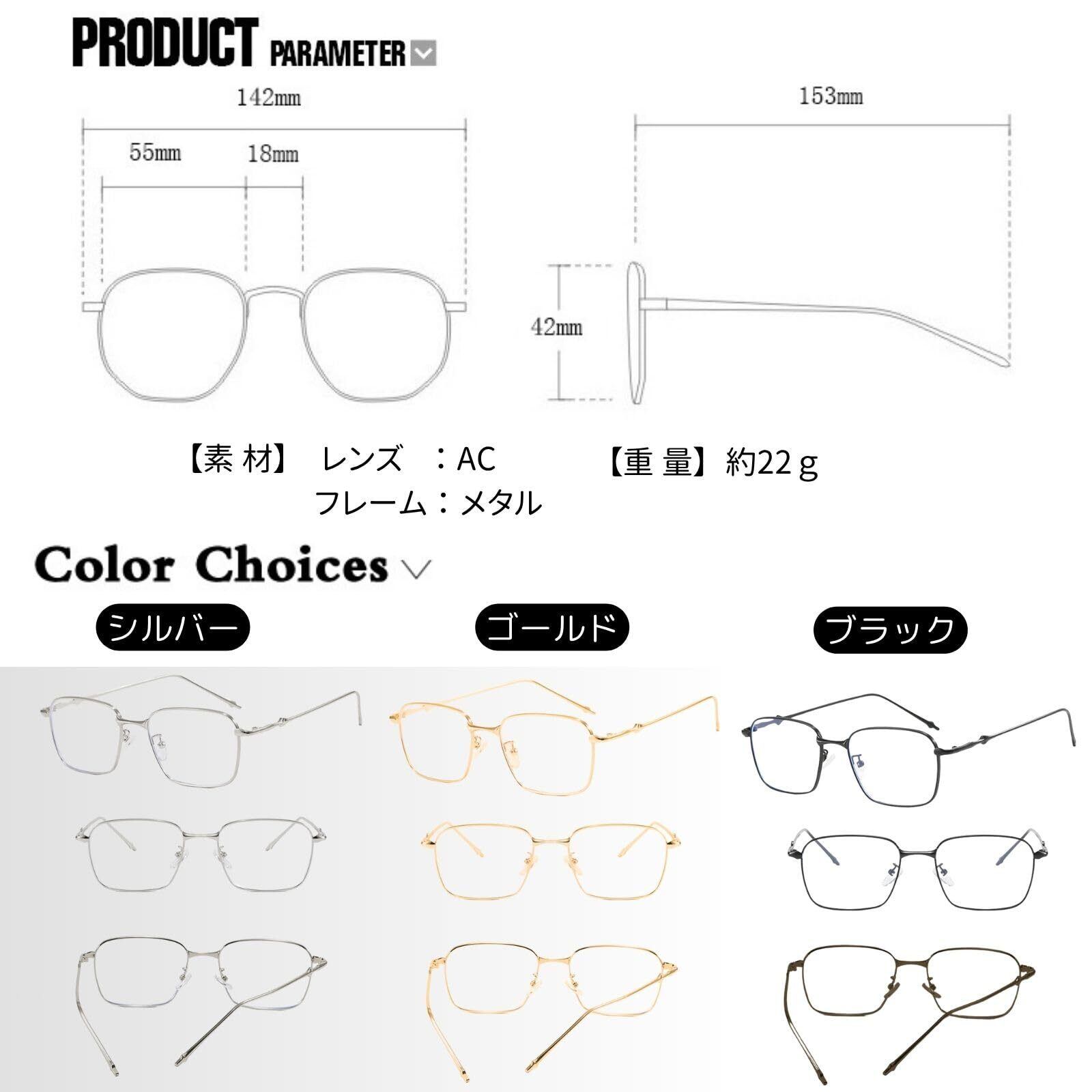 [Dea Bona] スクエア メガネ クリアレンズ メタルフレーム 伊達メガネ 韓国風 メンズ レディース 男女兼用 ストリート Y2K 軽量