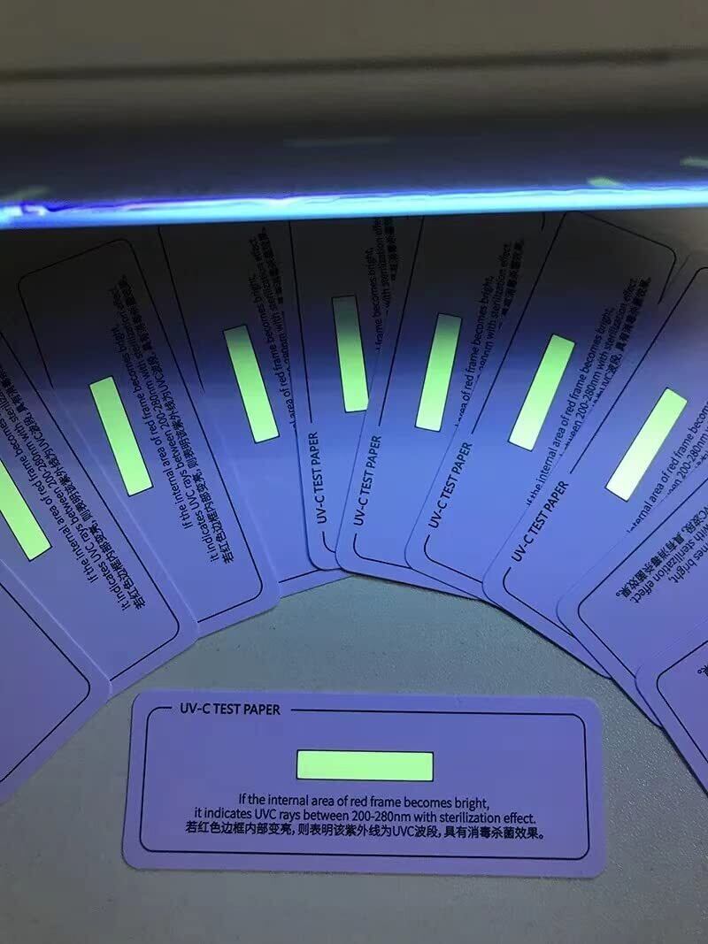 【安全材料】UVランプのUV-C光線及び殺菌灯の紫外線を簡易的な測定できて、UVチェックカードに印刷されたことは非毒性の安全検出材料であるので、環境と体に優しいです。ご安心ください。