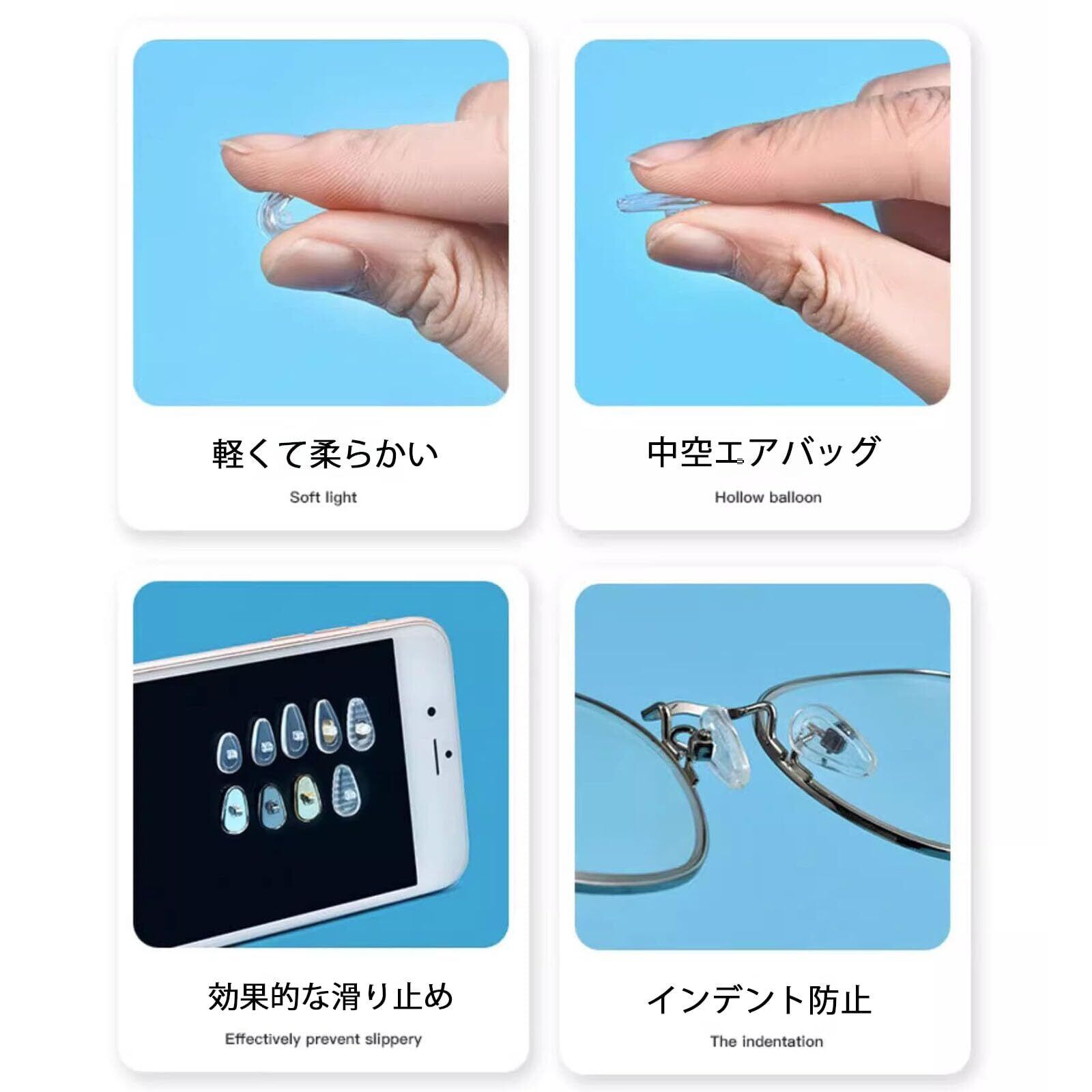 【エアクッションメガネ鼻パット】軽量、透明、衝撃が吸収し、鼻への負担を大幅に減すことができる鼻パッドです。中身はエアクッションで中空構造になっているので、鼻が圧迫される時、パッド内の排気穴からエア(空気)が抜けて、鼻骨に跡がつきにくくなっております。