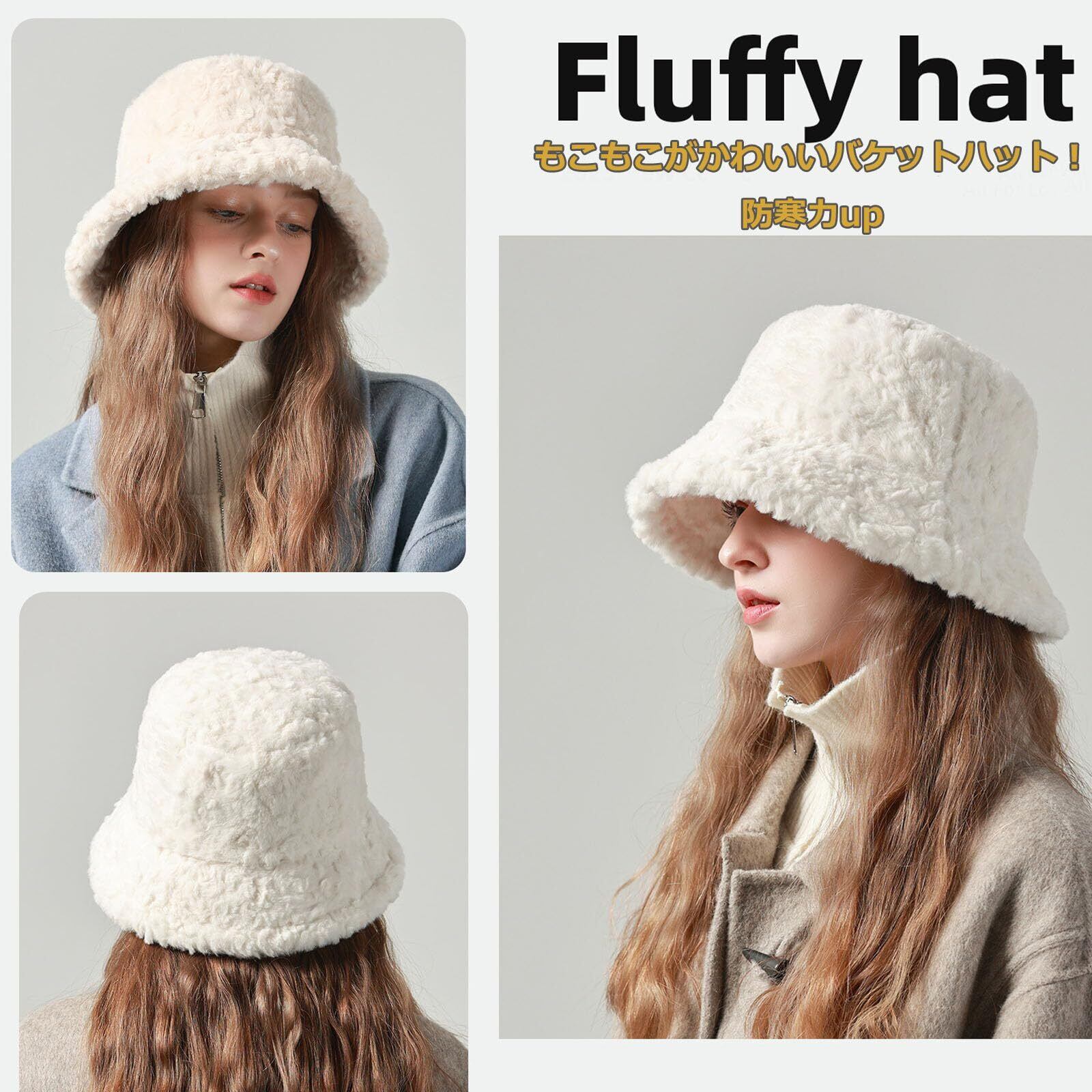 [shefun] バケットハット レディース 帽子 冬 防寒帽 頭囲56-60cm 厚手 125g もこもこ レディースハット 折りたたみ 小顔効果 ふわふわ バケット ハット JP508