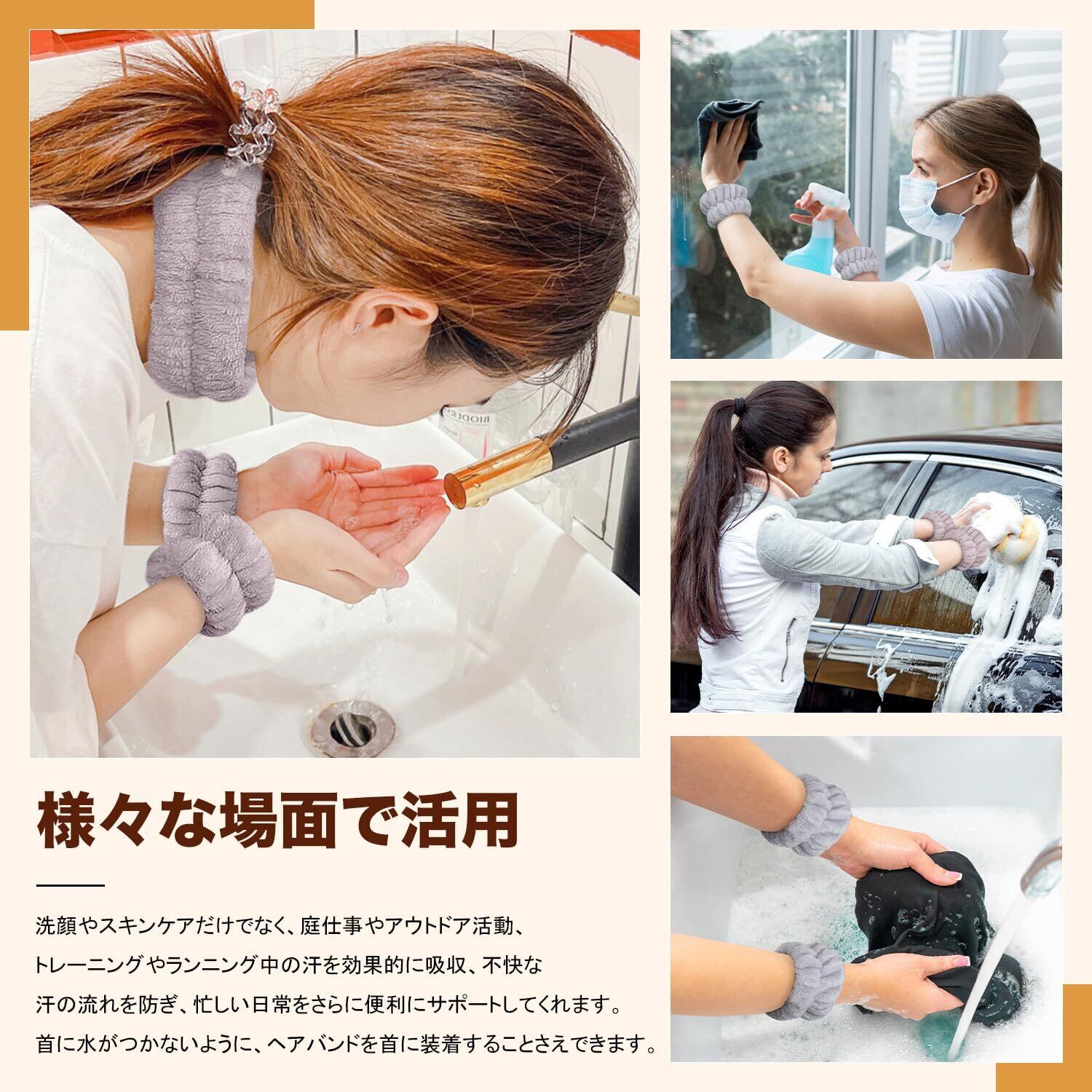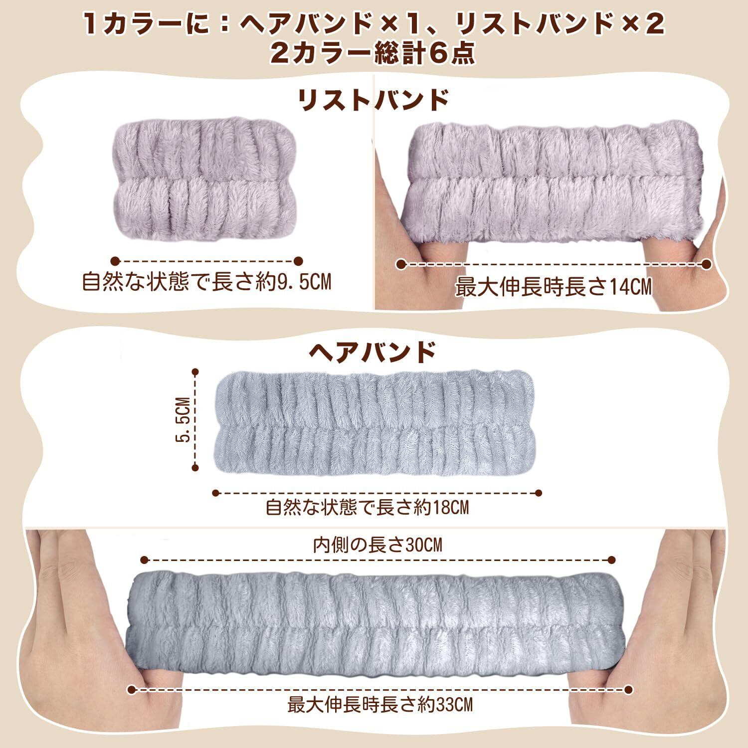 ヘアバンド 洗顔 リストバンド 2セット(6点)入り 吸水リストバンド 洗顔用ヘアバンド 優しくフィットする ヘアターバン 洗顔 手首 バンド 柔らかい 速乾 伸縮性あり マイクロファイバー製 ふわふわ 汗留め お風呂 レディース メンズ (グレー+ブラウン)