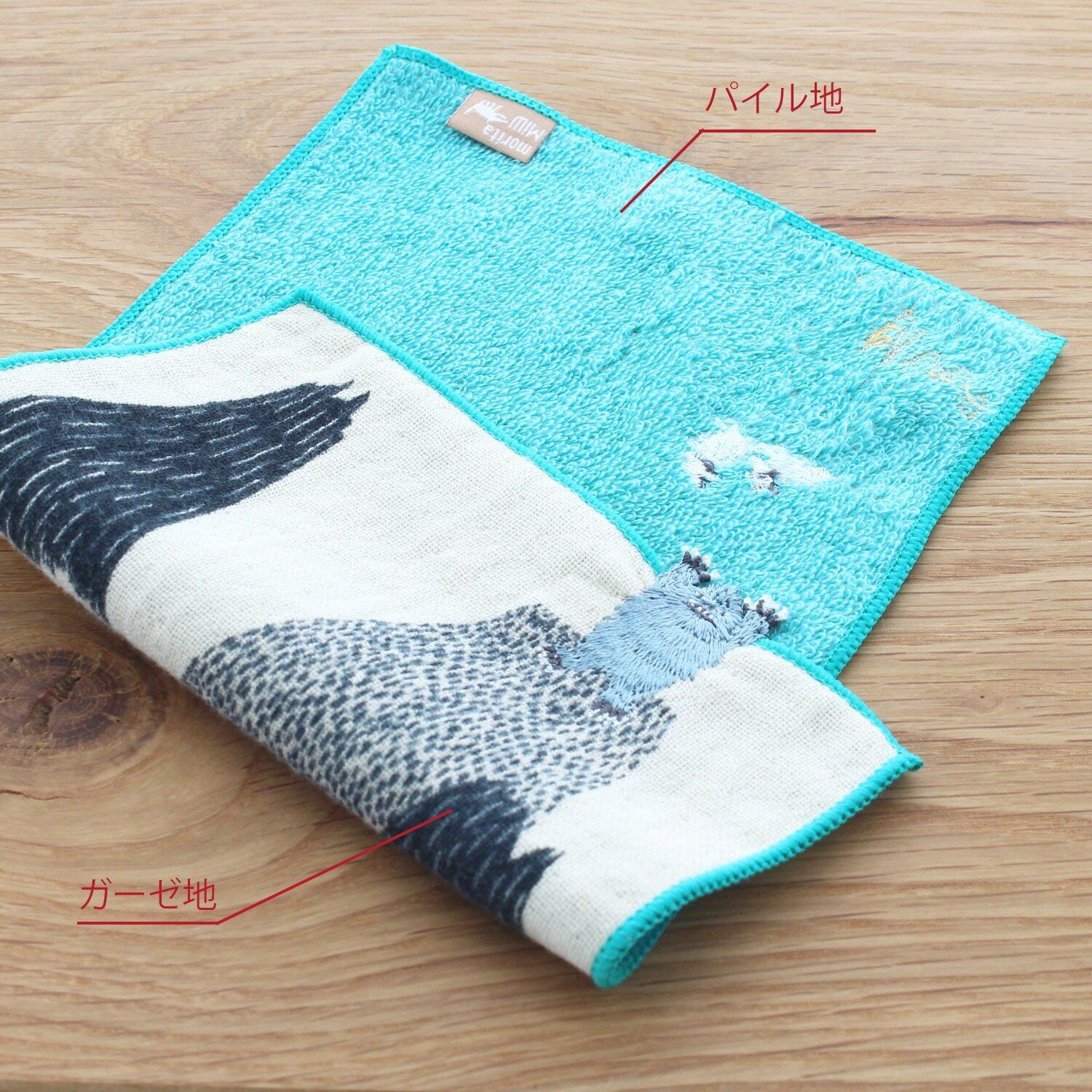 楠橋紋織 morita MiW 小さなポケットハンカチ バンザイイエティ ブルー A-64792-86-B 15.5×25cm