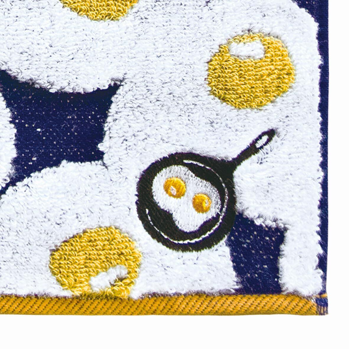 普通糸と無撚糸を組み合わせることでふわりと優しい触り心地。通常より小さめ(約23cm×23cm)で女性からこどもまで使いやすいサイズ。タオルの名産地、今治製ハンカチ。 醤油かソースか塩か人によってなぜか違う、目玉焼き柄。 サイズ:約23×23cm 素材:綿100% 生産国:日本(今治)