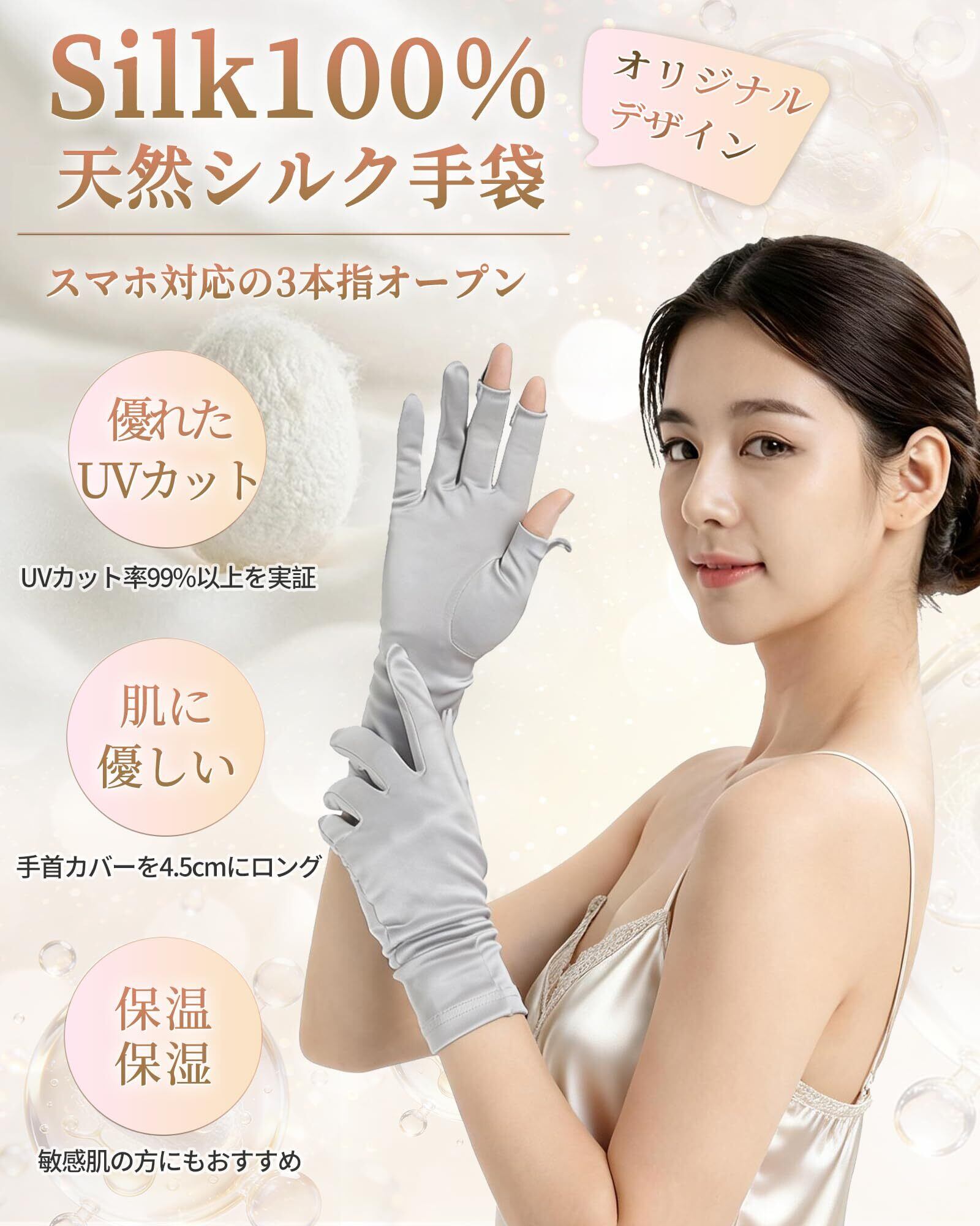 [VIVIMODA] シルク 手袋 保湿 スマホ対応 おやすみ 手袋/ナイト グローブ 【天然シルク100%x独自開発の3本指オープン設計】 ハンドケア UVカット 日焼け防止 手荒れ対策 夜用 レディース ワンサイズ (ブラック/ベージュ/グレー)