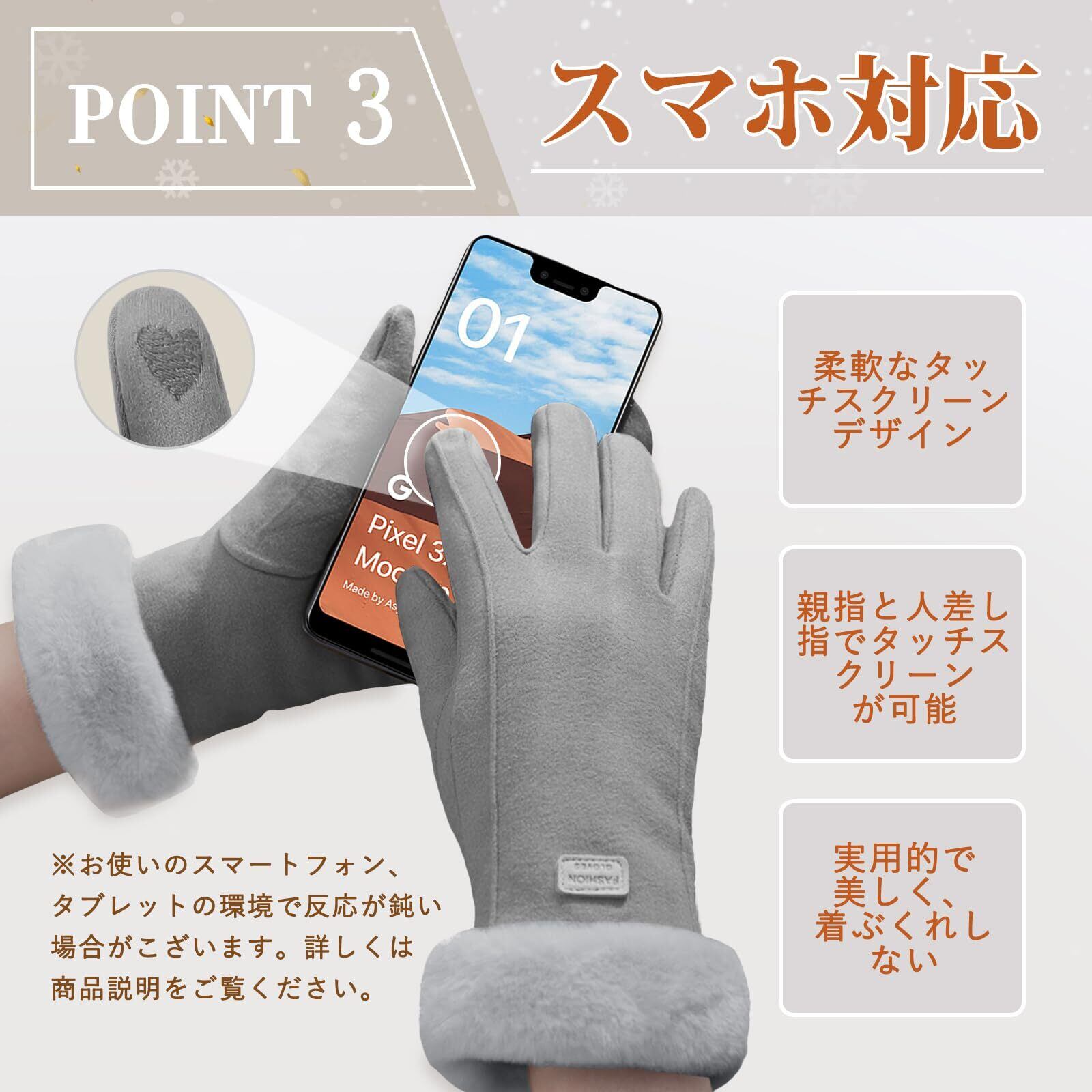 【スマホ対応OK!】 パッと見タッチパネル対応に見えないかわいい見た目。亲指と人差し指の腹の部分には、可愛いハート刺繍が施され、ハートの部分でスマホ画面をタッチすればタッチパネルの操作が可能。寒いときにいちいち手袋を取らなくても大丈夫、ロック解除や返信時にもスマートに対応できます。 寒い屋外でも楽しく過ごせます。かわいさと実用性を兼ね備えた優秀な手袋です