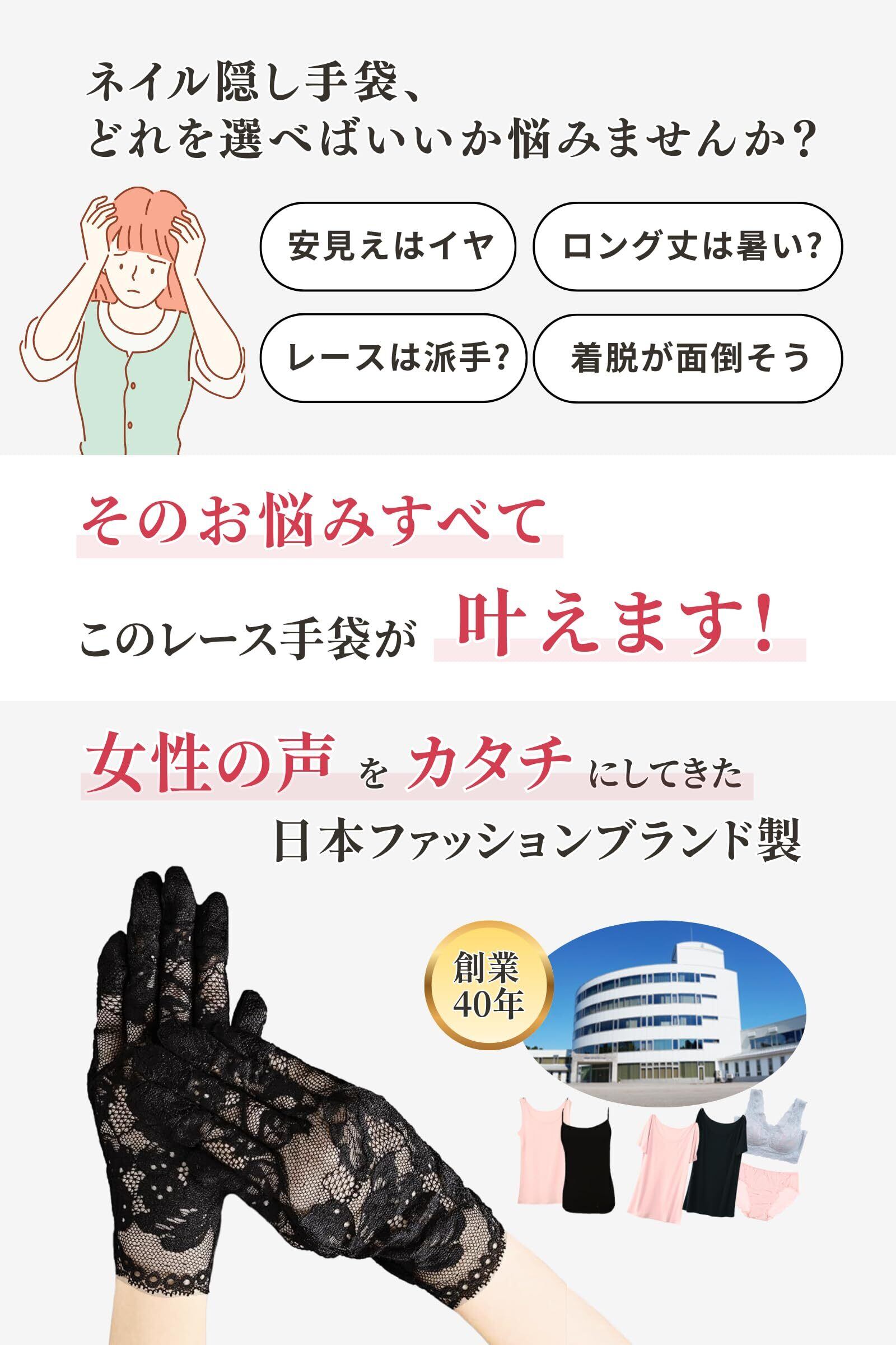 [あつみファッション] ネイル隠し 手袋【通年使えるデザイン】どんな指先にも合うストレッチ素材 葬式 レース フォーマル 黒 レディース