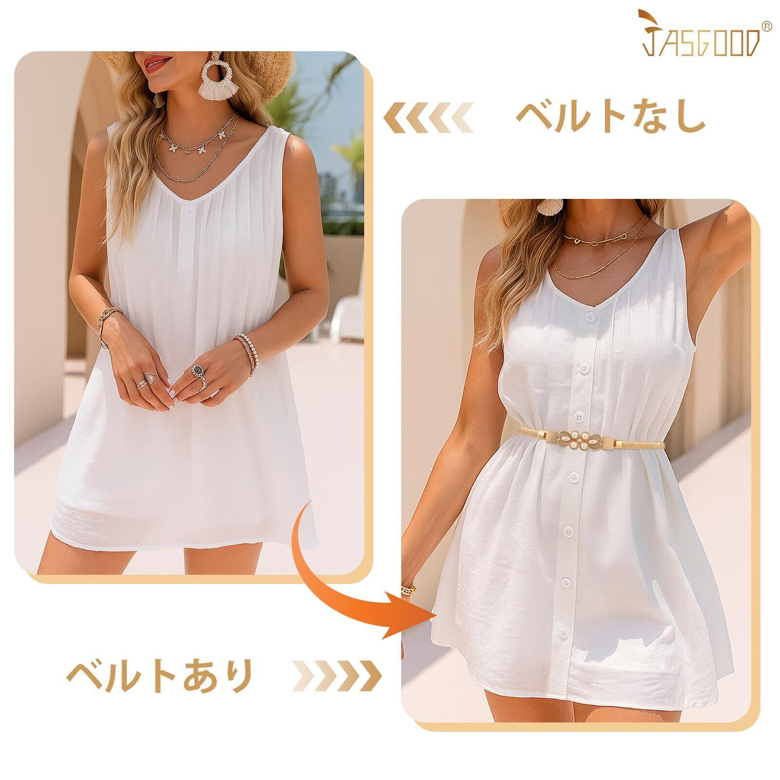 [JASGOOD] ベルト レディース 細い 幅1cm ドレス ベルト 伸縮あり金属 結婚式 パーティー 女性用 プレゼント最適