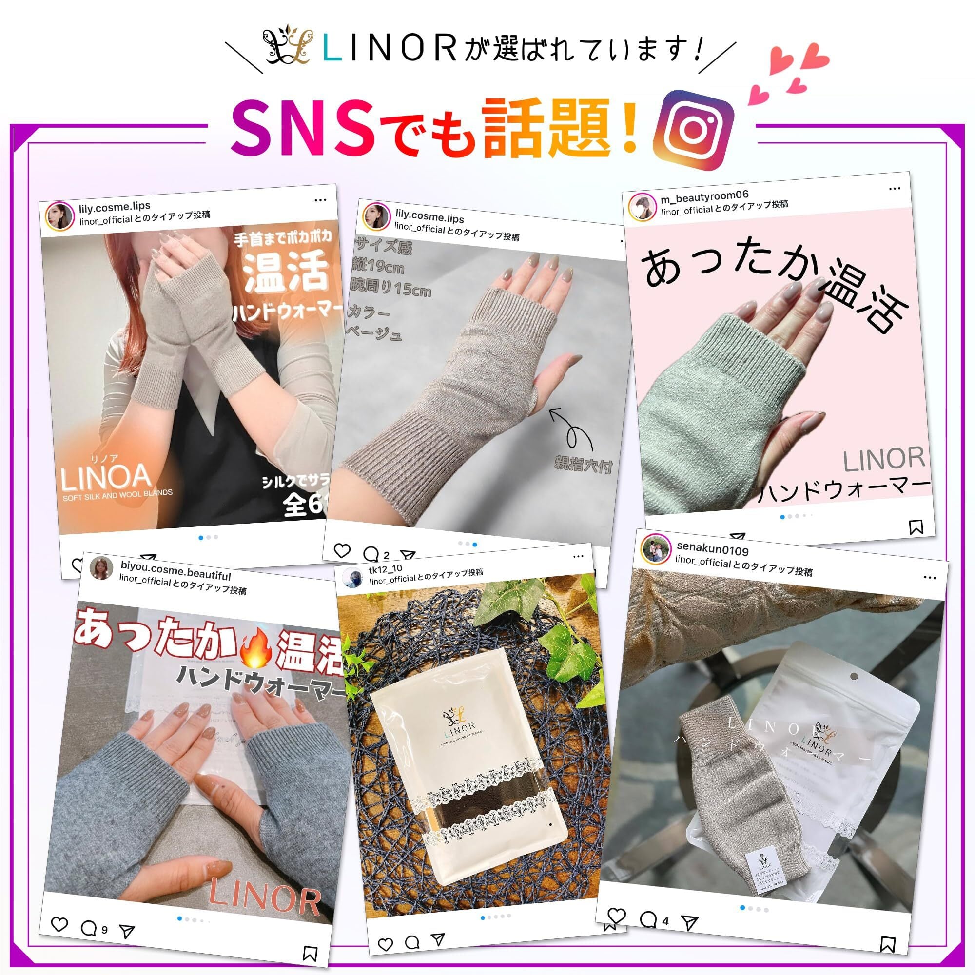 LINOR 手首ウォーマー リストウォーマー アームウォーマー ハンドウォーマー アームカバー レディース 冬 手首 あたため 親指穴付き さらさら シルク混