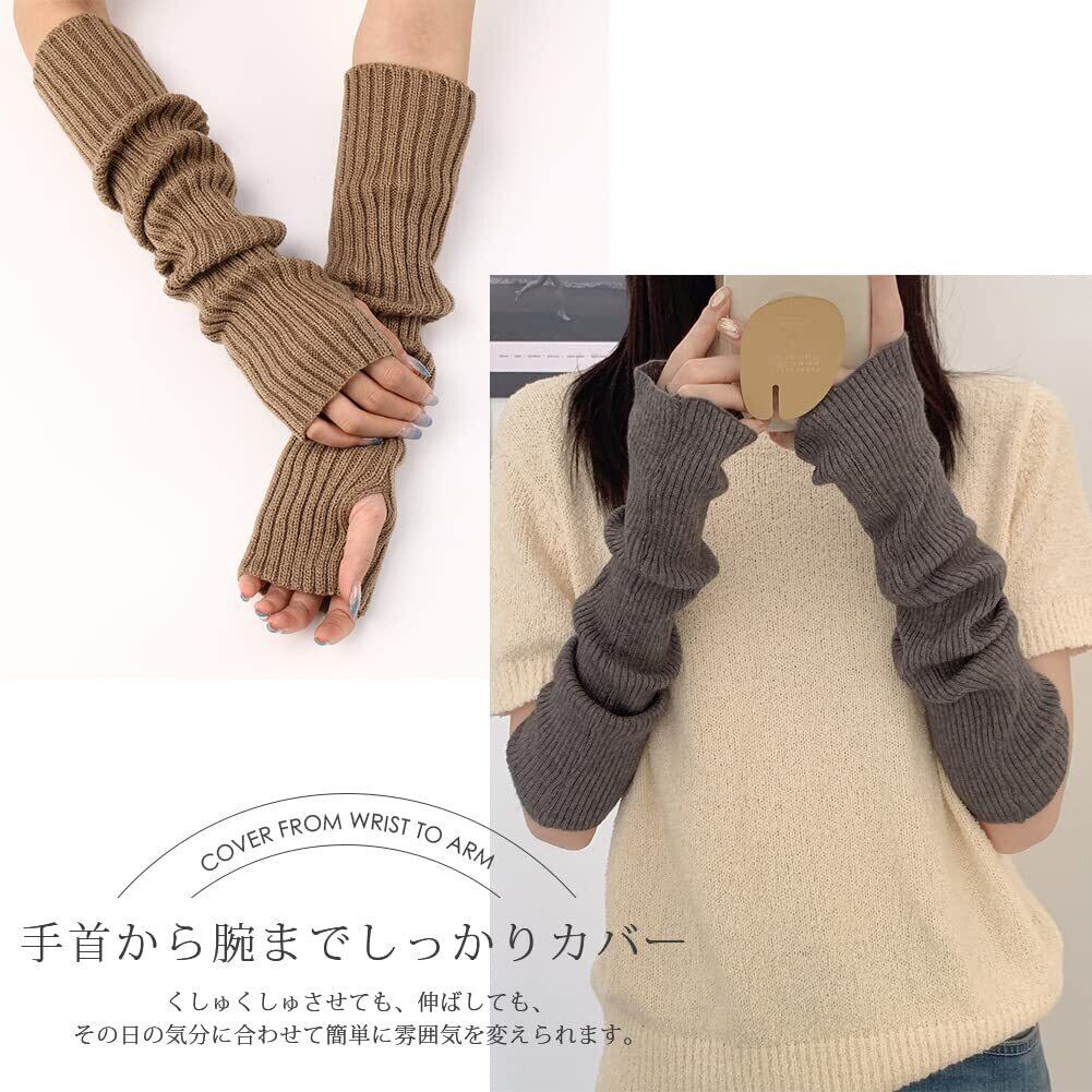 [YUMISS] アームカバー レディース アームウォーマー 【手首から腕までカバー・極暖防寒・指掛けタイプ】 スマホ操作 ニット 7色 防寒 手荒れ 指なし 冷え対策 伸縮性 春 秋 冬