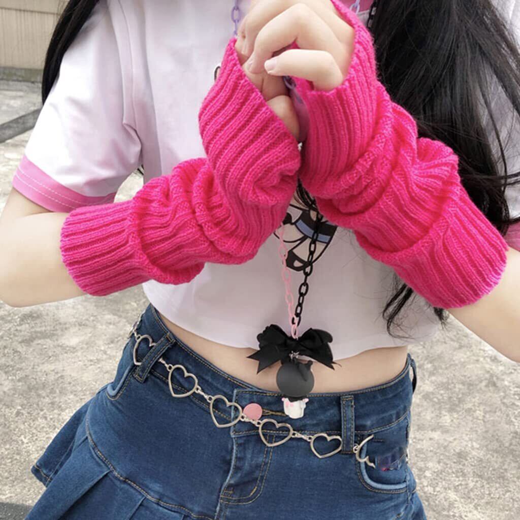 【2022最新】shunxinerstyニットスリーブニットアームスリーブサムホールグローブウィンターアームウォーマーロングハーフフィンガーミトンストレッチ無地アームカバーホワイト
