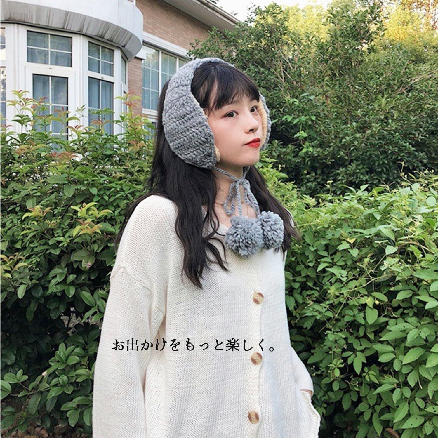 【数量限定】[Lapimou] 耳当て イヤーマフ 耳あて レディース かわいい おしゃれ ふわふわ ニット ポンポン 紐付き クロシェ編み 防寒 イヤーマフラー イヤーウォーマー フェイクファー ボア 耳 アクセサリー オシャレ トレンド 大人 韓国