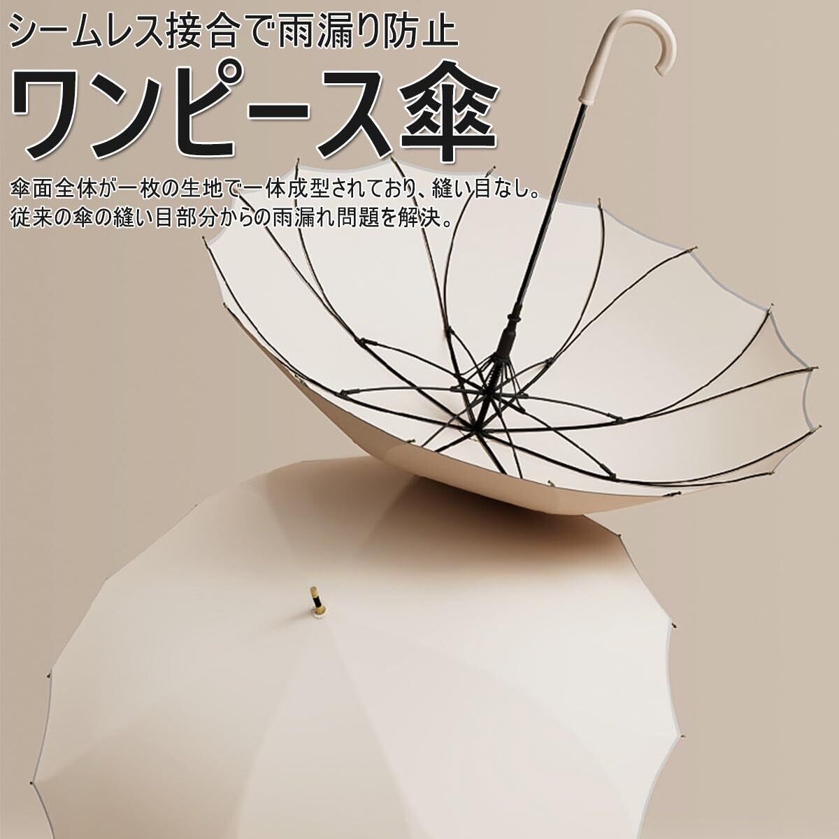 【頑丈な16本骨】軽くてしなやかで丈夫なグラスファイバーを採用した16本親骨が作り出す、円に近い美しいフォルムは強い風にも負けない耐久性を実現しました。風を受けても折れにくい安定感があり、骨が多くてもより軽量で持ち歩きやすい。