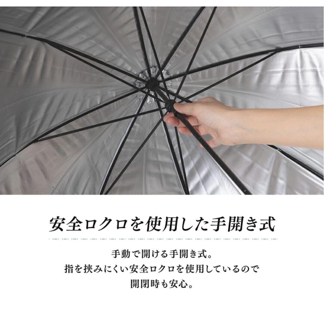 【絶対に焼けたくない方に】UPF50+で紫外線遮蔽率は99.9%、遮光率は驚異の100%!高いUVカット効果でお肌を守ります。地面からの照り返しもカットするシルバーコーティングと、傘内の温度上昇を約2/3に抑える遮熱効果で、暑い季節にも安心です。(※研究測定調査の調査機関:一般財団法人カケンテストセンター。調査日:2022年1月31日)