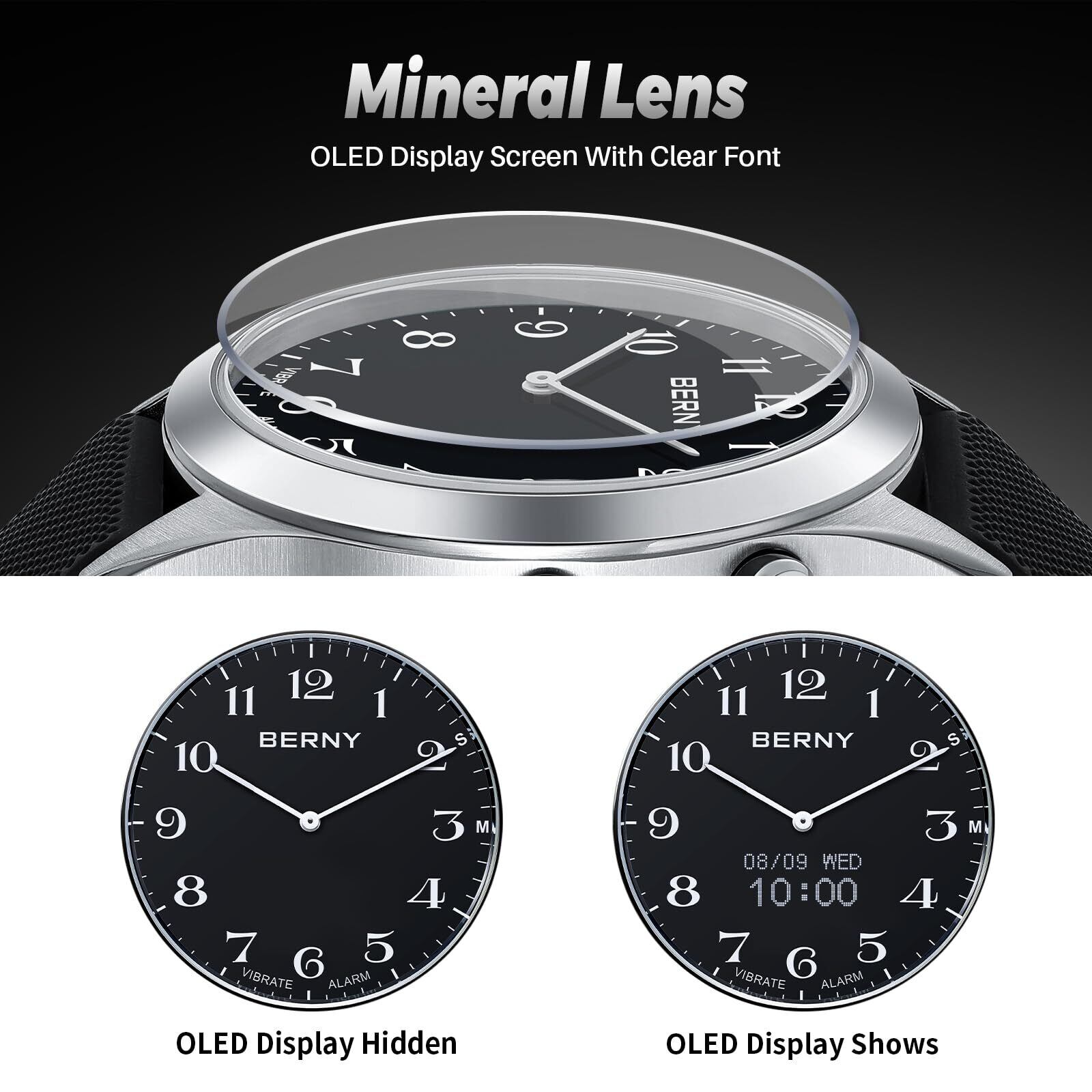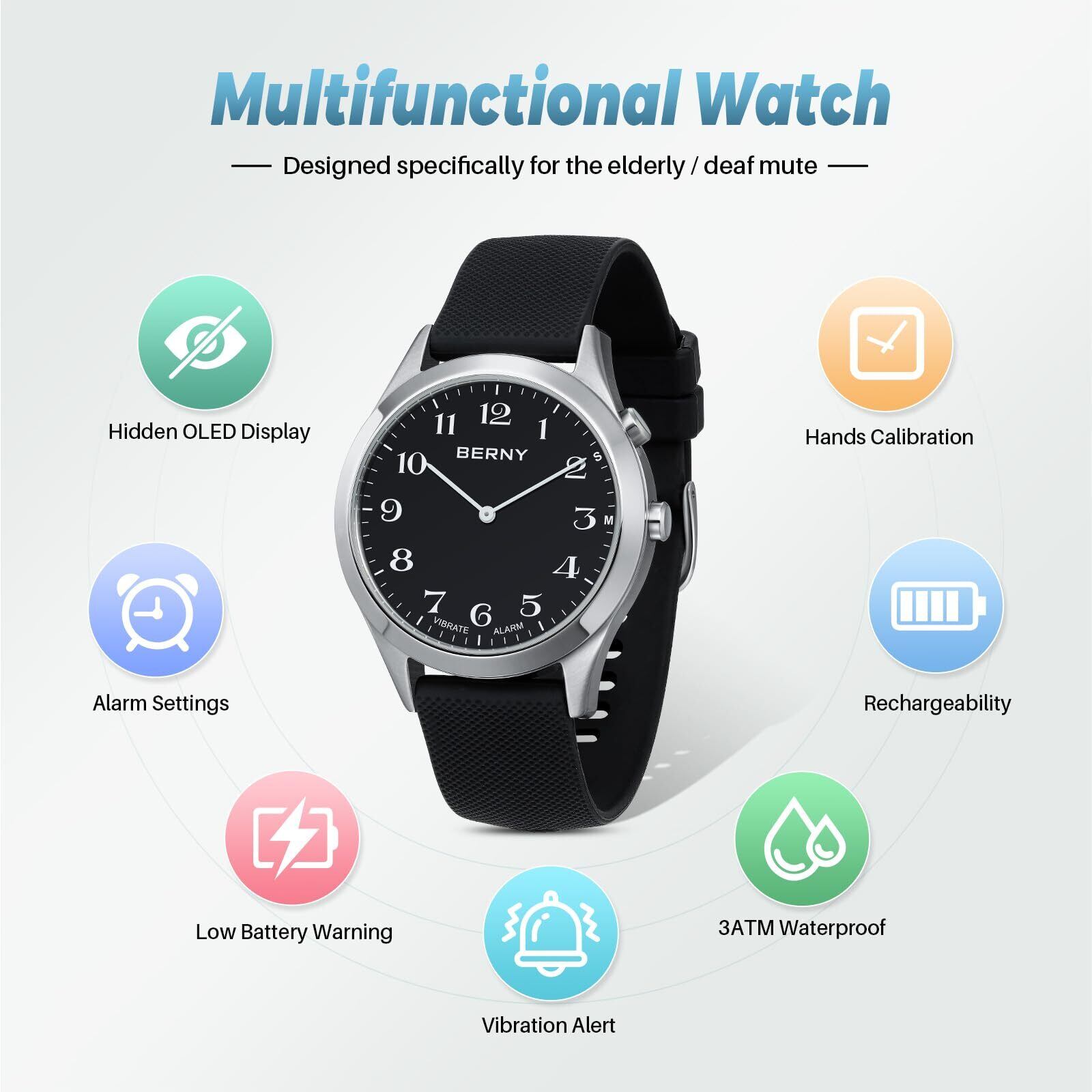 BERNY 腕時計 振動式腕時計 多機能腕時計 隠れたOLEDディスプレイ 振動アラート アラームの設定が可能 高齢者・聴覚障害者向けに特化した設計-3気圧防水 ブラック…