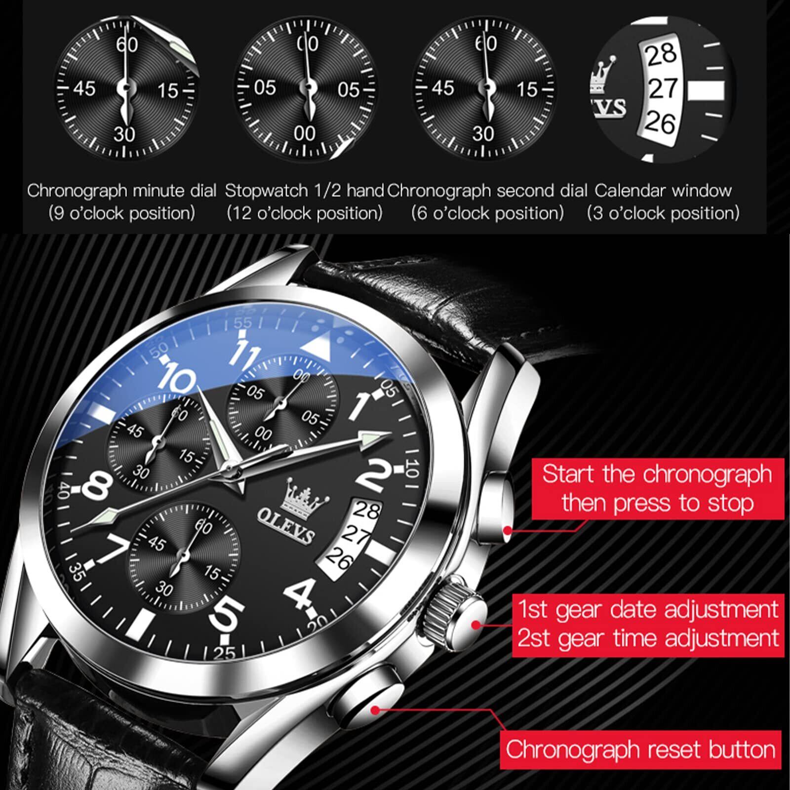 OLEVS 腕時計 おしゃれ メンズ 黒 シンプル 防水 ビジネス 日付 とけい腕時 計メンズ革 クオーツ アナログうで時計 クロノグラフ 人気 プレゼント アラビア数字 見やすい 男性 腕時 計 かっこいい Watch for Men