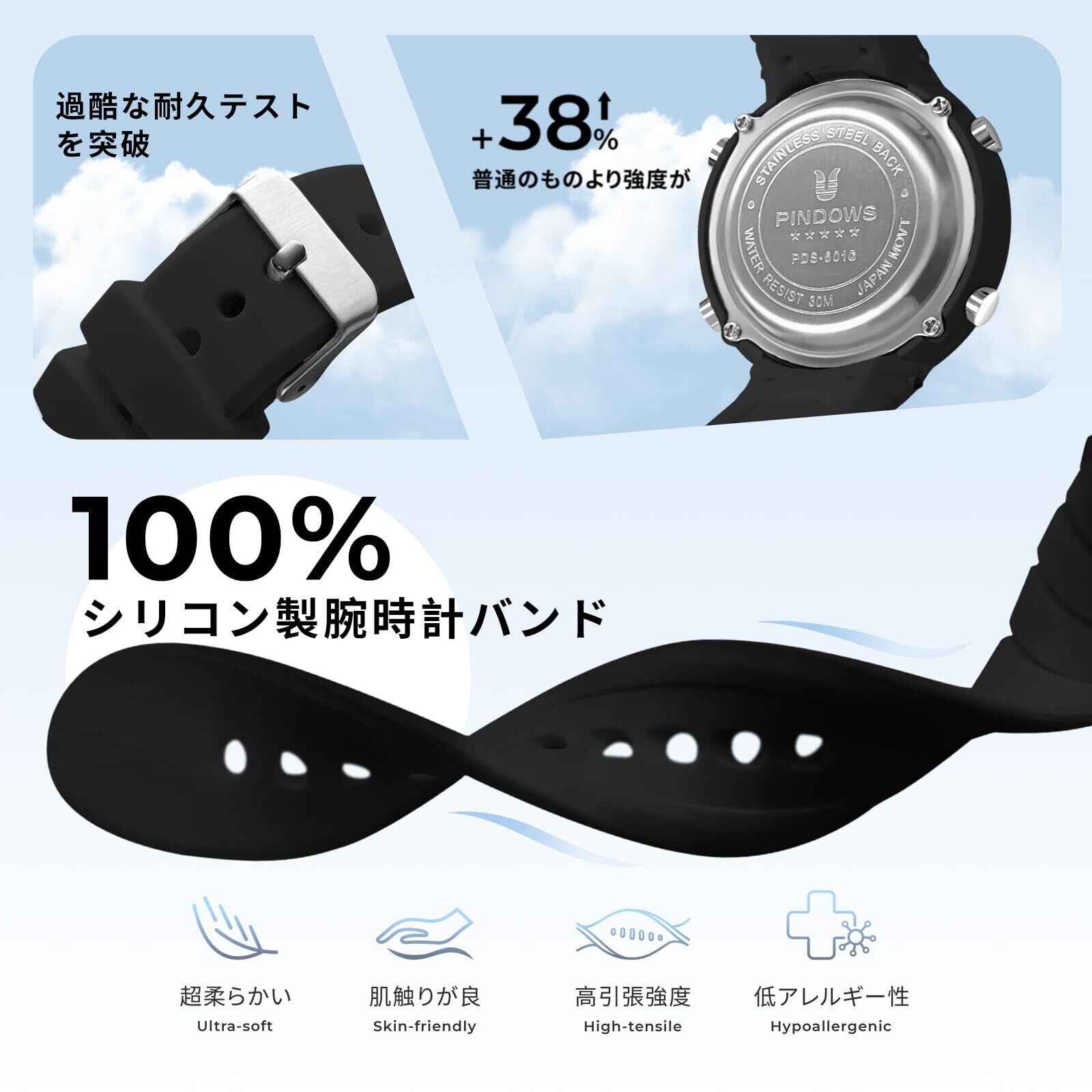 【信頼性の高いパフォーマンスを実現するプレミアム日本製ムーブメント】日本製ムーブメントとバッテリーを搭載したこのPINDOWSデジタル時計は、最長2年の電池寿命で正確な計時を実現します。忙しいスケジュールにも対応する設計で、大切な予定を決して逃しません