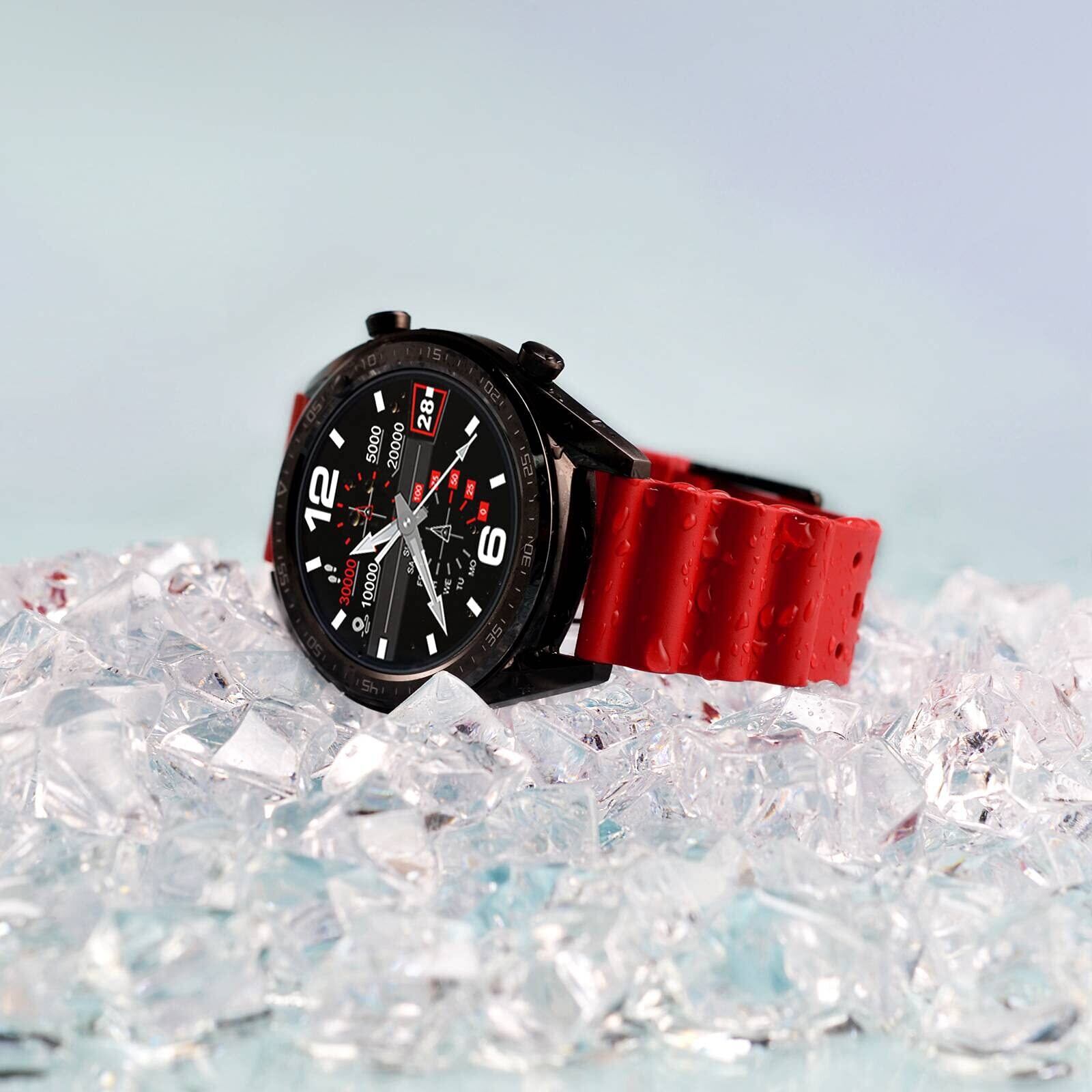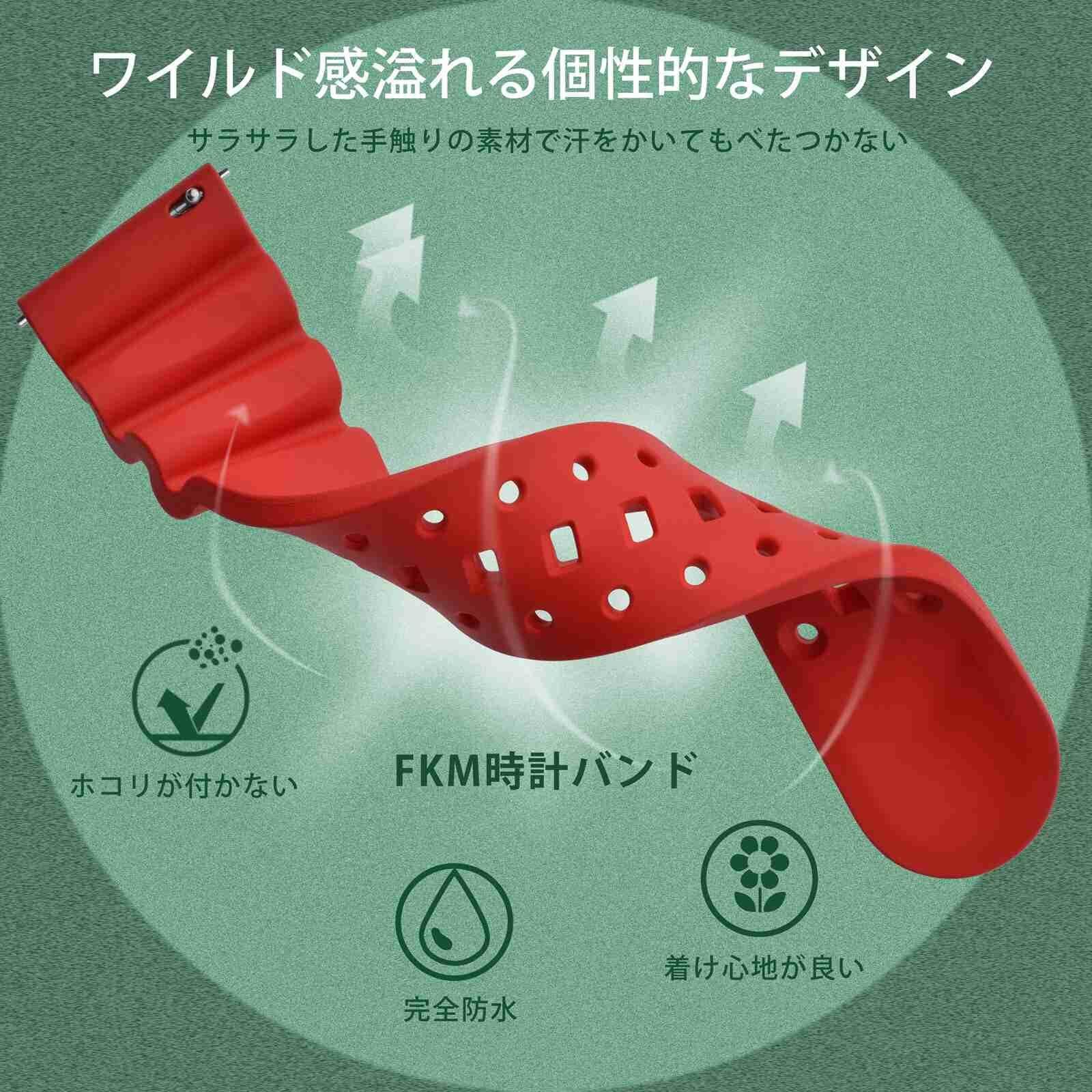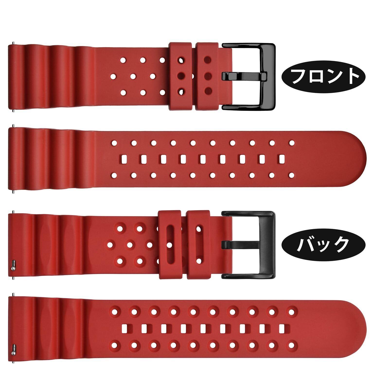 [WOCCI]フッ素ゴム時計ベルト22mm FKM高級腕時計シリコンバンド イージークリック付き レッド/ブラックバックル