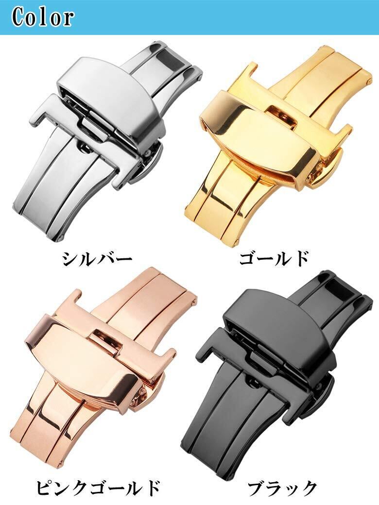 カルム プッシュ式 Dバックル 腕時計 尾錠 10㎜ 12㎜ 14㎜ 16㎜ 18㎜ 20㎜ 22㎜ (20㎜, シルバー)