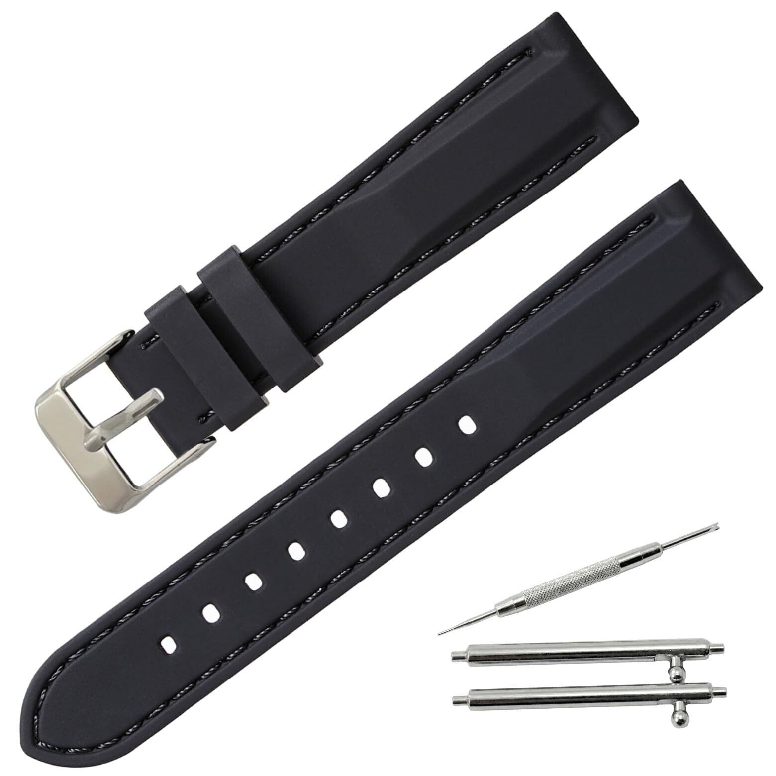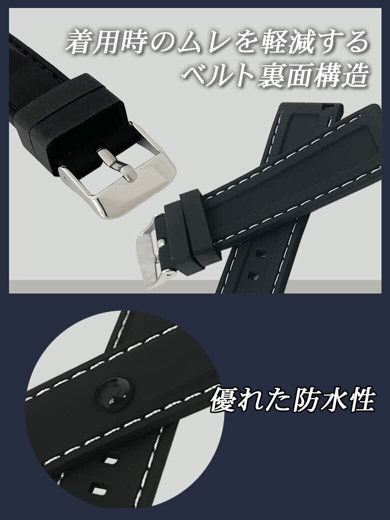 【在庫処分】Calme(カルム) 腕時計 シリコン ベルト 時計 クイックリリース ラバー バンド カラーステッチ 18㎜ 20㎜ 22㎜ 24㎜ 交換説明書付 (20㎜, ブラック)