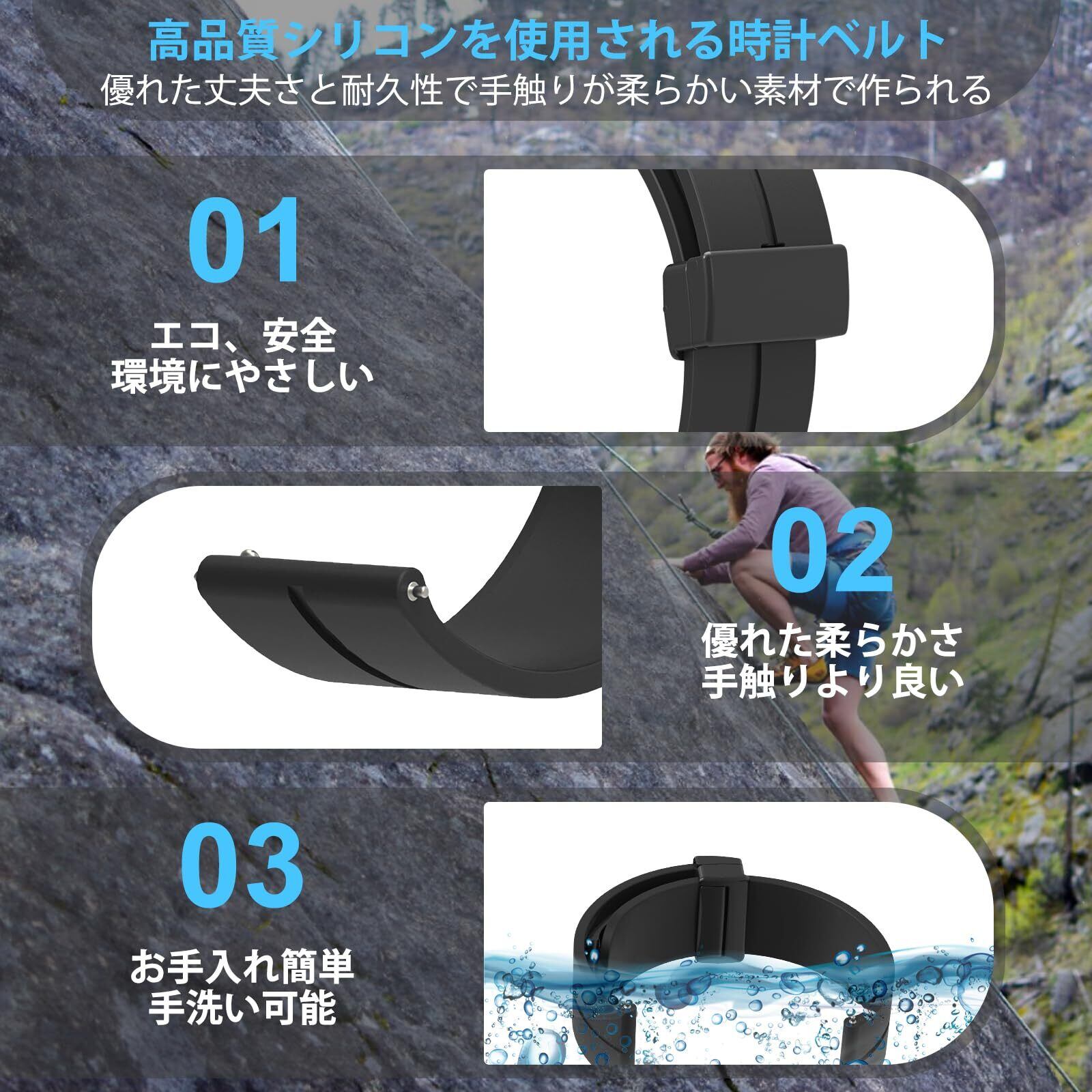【高質量シリコンベルト・防水性通気性良い】この時計バンドは高品質なシリコン素材を使用しているので柔らかくサラサラした着け心地。長時間着けても、汗をかいてもベットリせずストレスがありません。