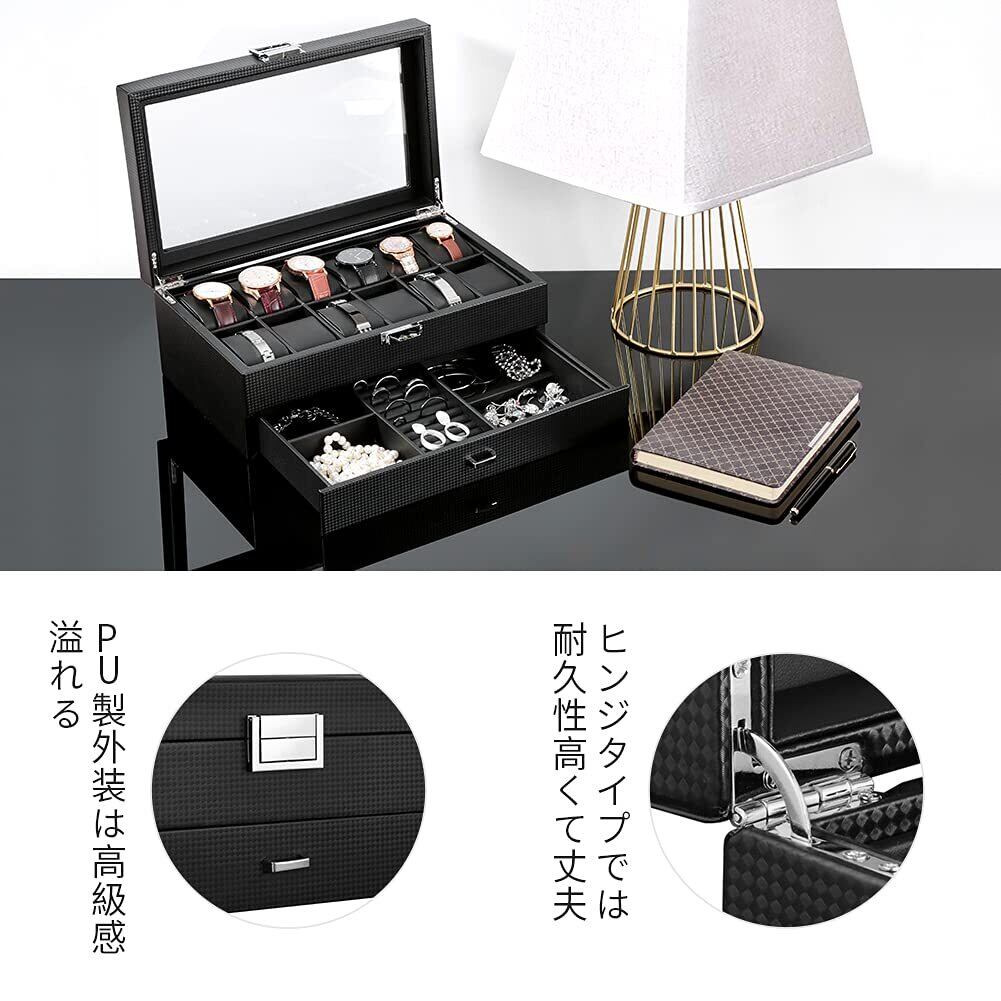 【新着商品】腕時計収納ケース アクセサリー 収納 時計ケース 12本 時計 収納ボックス 2段式 高級 ウォッチ 収納ケース コレクションケース PUレザー製… (12本 2段式-炭素繊維)