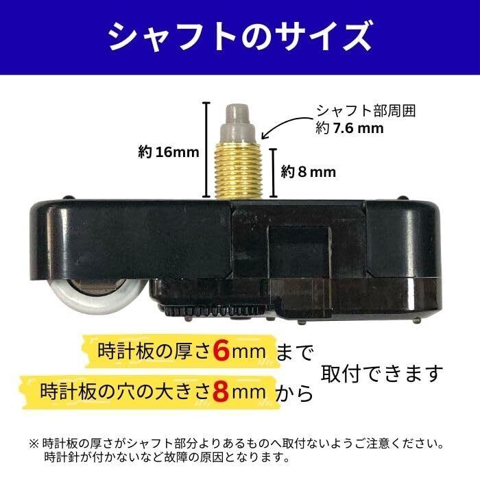 時計針サイズ;時針53mm、分針:69mm、秒針:74mm シャフト長さ;16㎜(ねじ部分8mm)