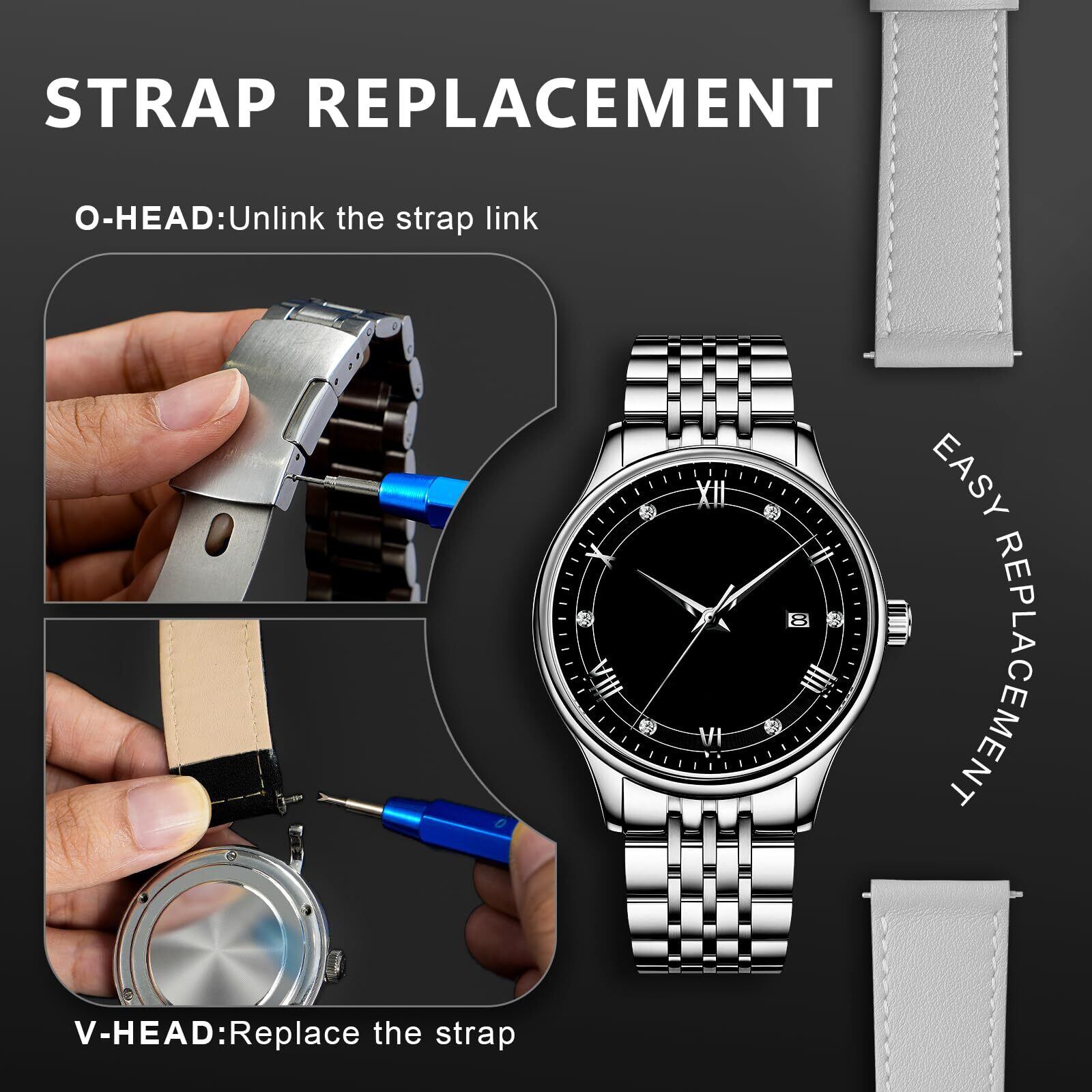 【幅広い用途】このツールセットは、3種類の時計の裏蓋の開閉、ストラップの調整、時計のネジの取り外しなど、様々なニーズを満たすことができます。