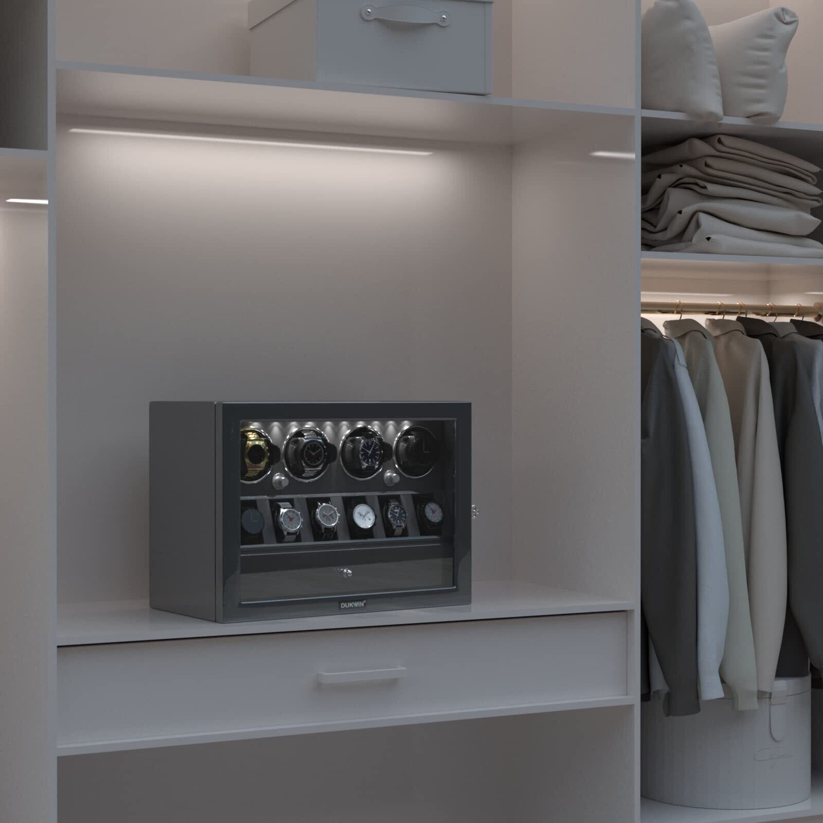DUKWIN ワインディングマシーン 4本巻き+6本収納 ウォッチワインダー 自動巻き上げ機 収納ケース 腕時計ワンダー 引き出し付き 日本製マブチモーター 静音 LED照明内蔵 耐久性 (ブラック)