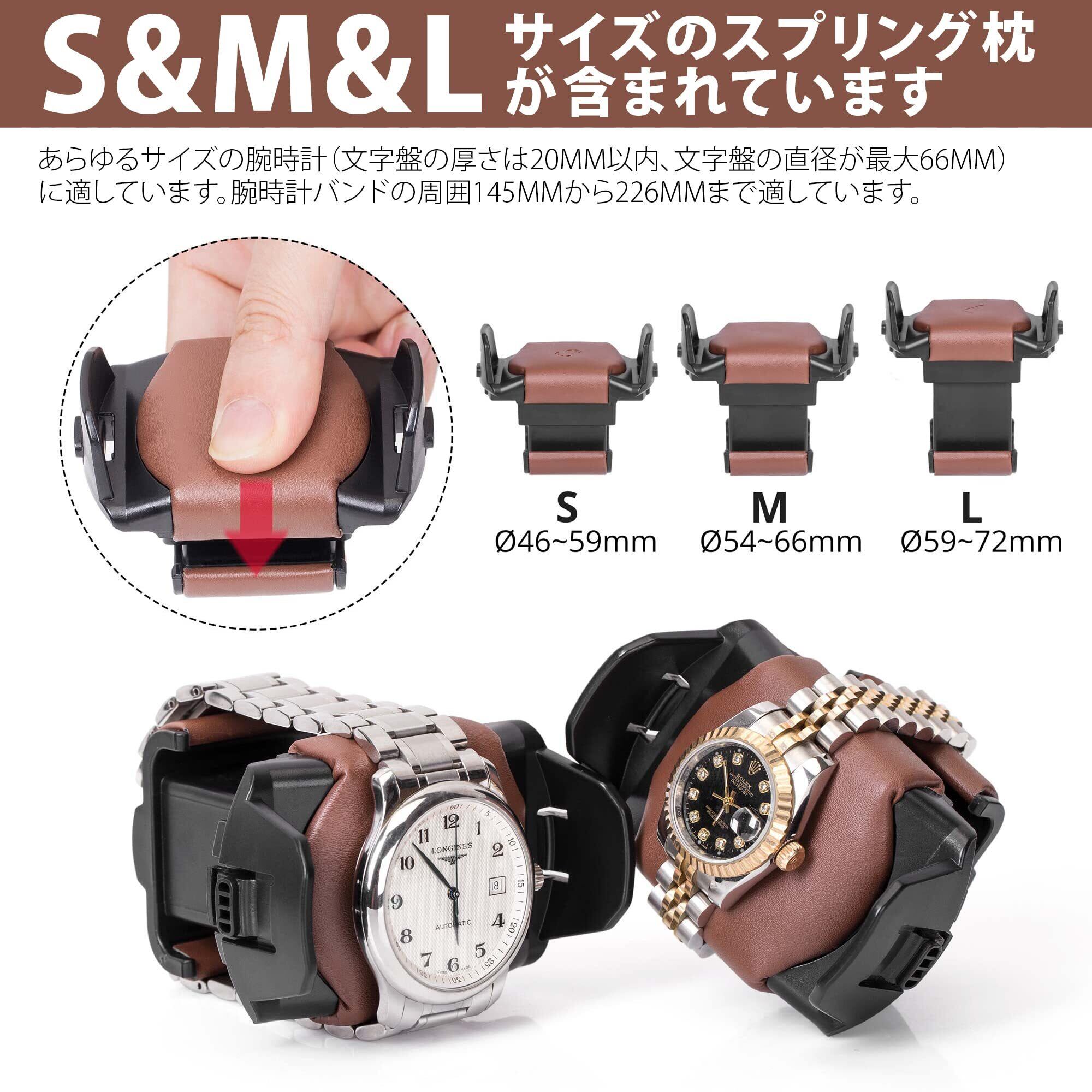 【3本巻き上げ& 4本収納】文字盤の厚みは20mm以内、文字盤の直径が最大66 mm、腕時計バンドの周囲145 mmから226 mmまで適しています;SからLサイズのクッションが含まれており、さまざまなサイズの時計に対応できます。