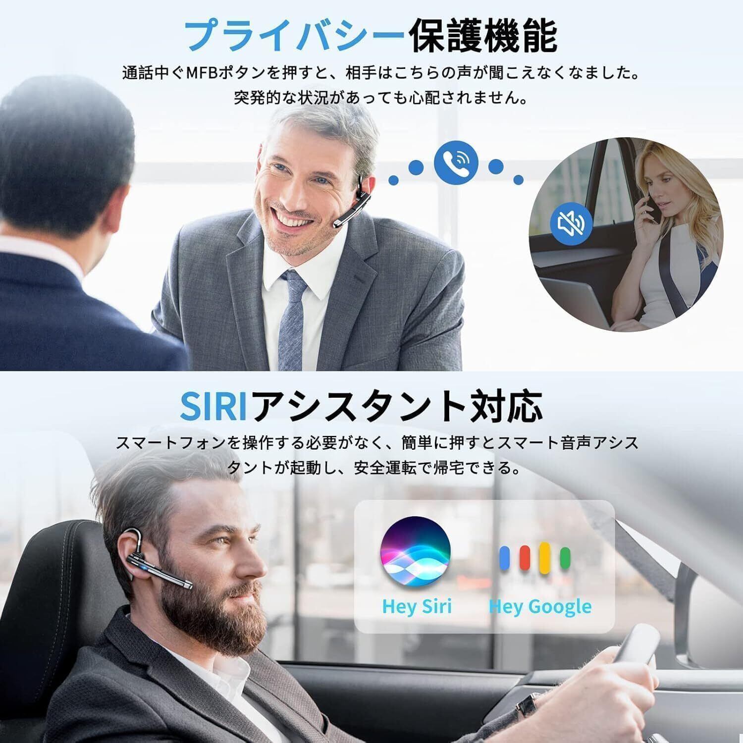 【ハンズフリー通話専用マイク搭載・ミュート機能搭載】Bluetoothヘッドセットは単一指向性マイクとCVC8.0ノイズキャンセリング機能が搭載により、正確に声を拾い、周囲からのノイズをブロックし、よりクリアな通話を実現でき、騒がしい場所でも相手にクリアな音声を届けます。また、個人のプライバシーを保護するために、ミュート機能も搭載されており、通話中、「MFB鍵」を押すと、こちらの声は相手に聞こえなくなるため、会議中など、機密情報を扱う場合に便利です。