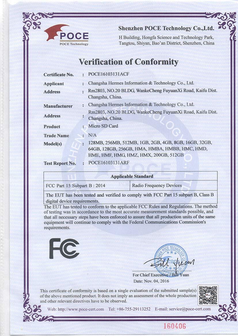 Micro SDカードはFCC、CE、ROSH証明書を取得しているが、より安定している