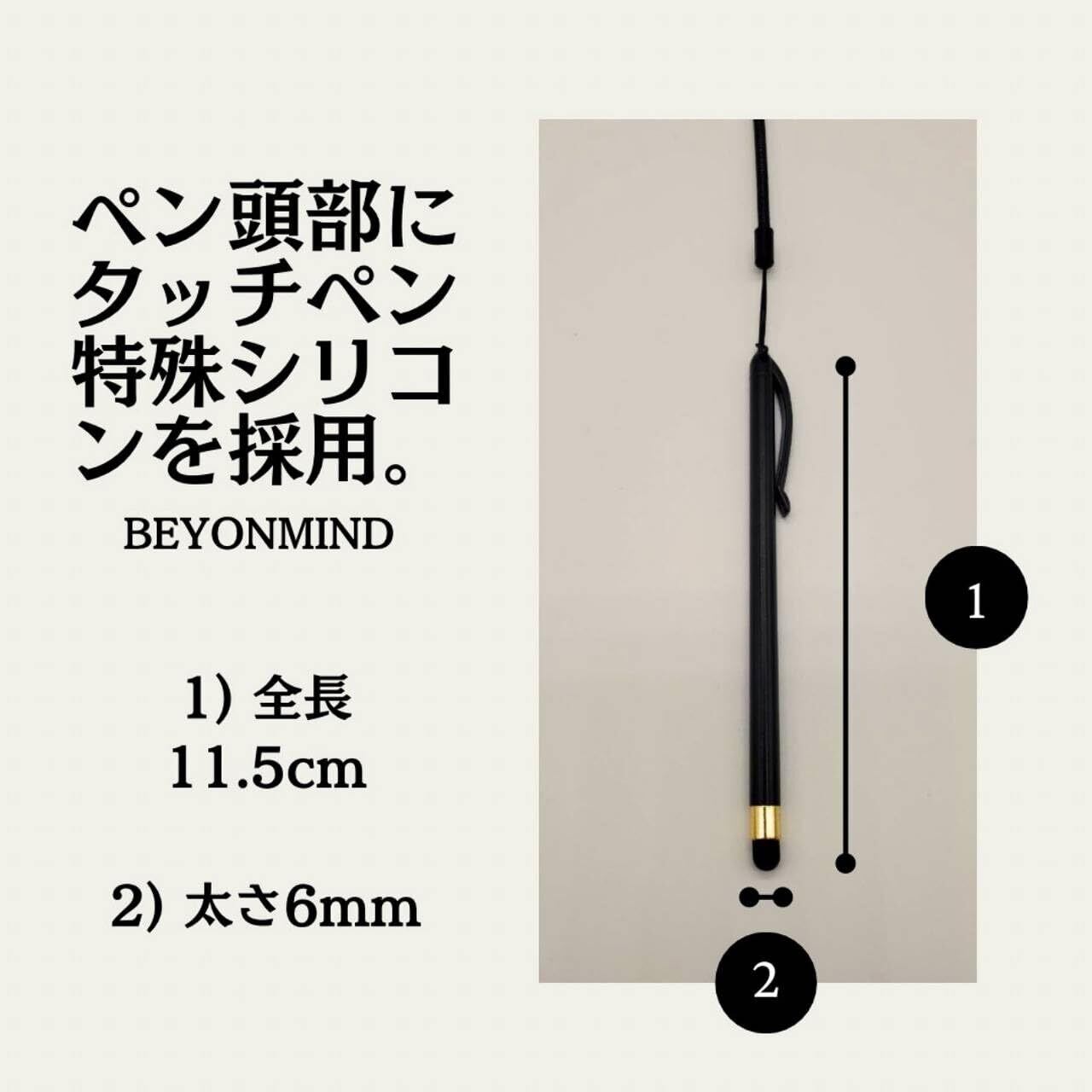 BeyonMind 紛失防止 スマホ タブレット用 タッチペン ストラップ スタイラスペン ( 最大伸長約90㎝ ) 快適な作業性の伸縮コイル / ペン先5mm 楽々入力(日本製 黒 MIND)