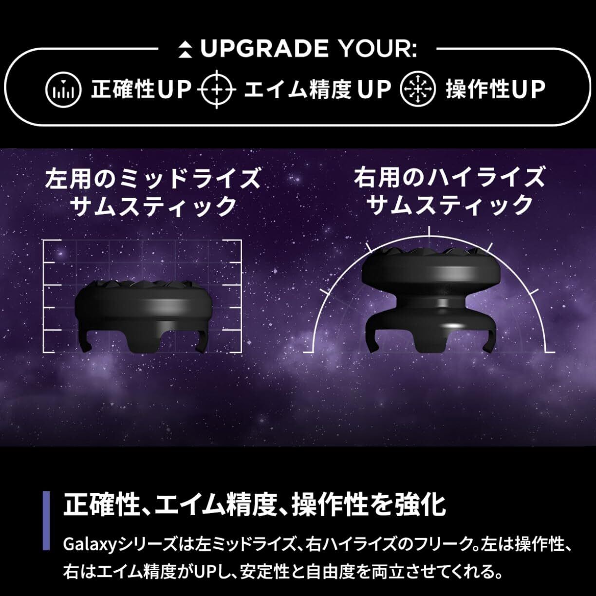 正確性の向上 –右ではより素早いターゲット補足と精度の向上、左ではコントロールと操作性の向上のための、異なる高さの組み合わせ。快適性とグリップの向上 – ノンスリップな当社独自のラバーコンパウンドが優れたグリップを提供。より少ない力で操作できることによる、手首・手・親指の疲労軽減。高層(凸型)サムスティック1個 — 右アナログスティックに装着。 高さを11.8 mm加え、正確性を向上。中層(凸型)サムスティック1個 — 左アナログスティックに装着。 高さを7.6 mm加え、ゲーム内の動きのコントロールを向上。高い汎用性 — グリップ力と快適性の向上により、あなたのゲームコレクション全体を渡って使うことができます。また純正スティックを消耗から保護します。