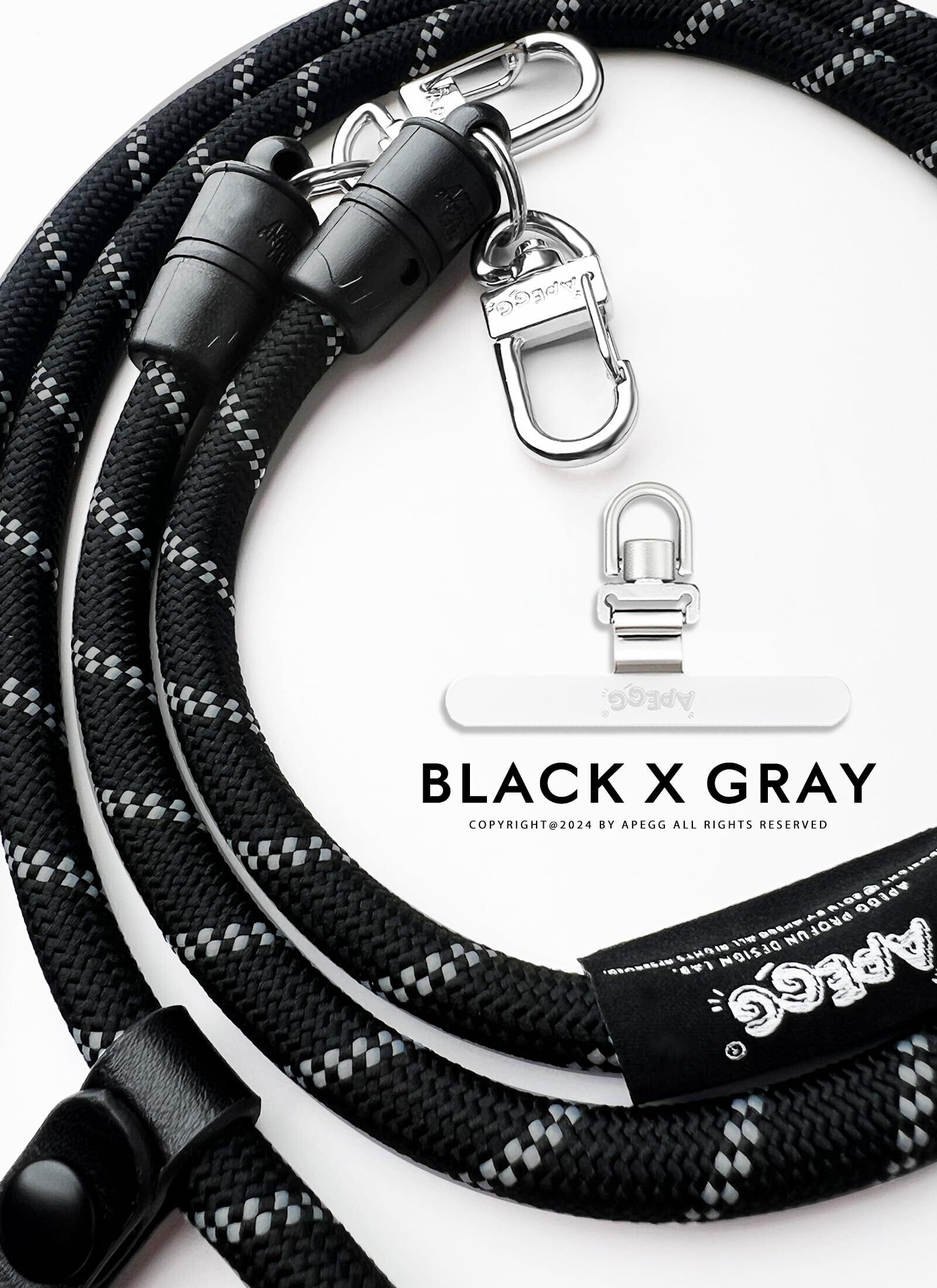 [VPEGGGP] APEGG スマホショルダー 120cm スマホストラップ 携帯ストラップ ショルダー 肩掛け 首掛け 斜めがけ iPhone 全機種対応 アウトドア ネックストラップ ストラップホルダー ストラップ 8mm_Black × Gray