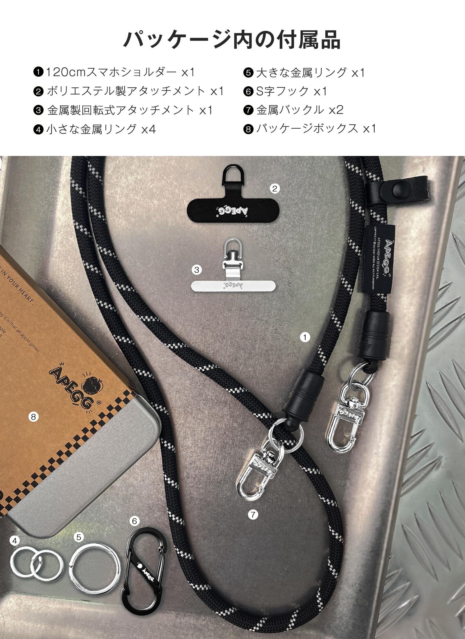 【人気商品】[VPEGGGP] APEGG スマホショルダー 120cm スマホストラップ 携帯ストラップ ショルダー 肩掛け 首掛け 斜めがけ iPhone 全機種対応 アウトドア ネックストラップ ストラップホルダー ストラップ 8mm_Black × Gray