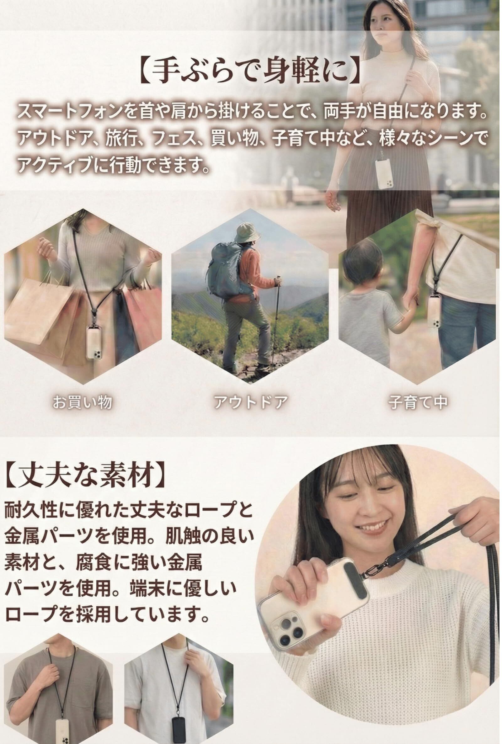 [plaiz] 【コーデになじむ上品デザイン】 2026最新 スマホ ショルダーストラップ ストラップホルダー iPhone用ストラップ 長さ調整可能 紛失 落下防止 ネックストラップ 斜めがけ ステンレス おしゃれ