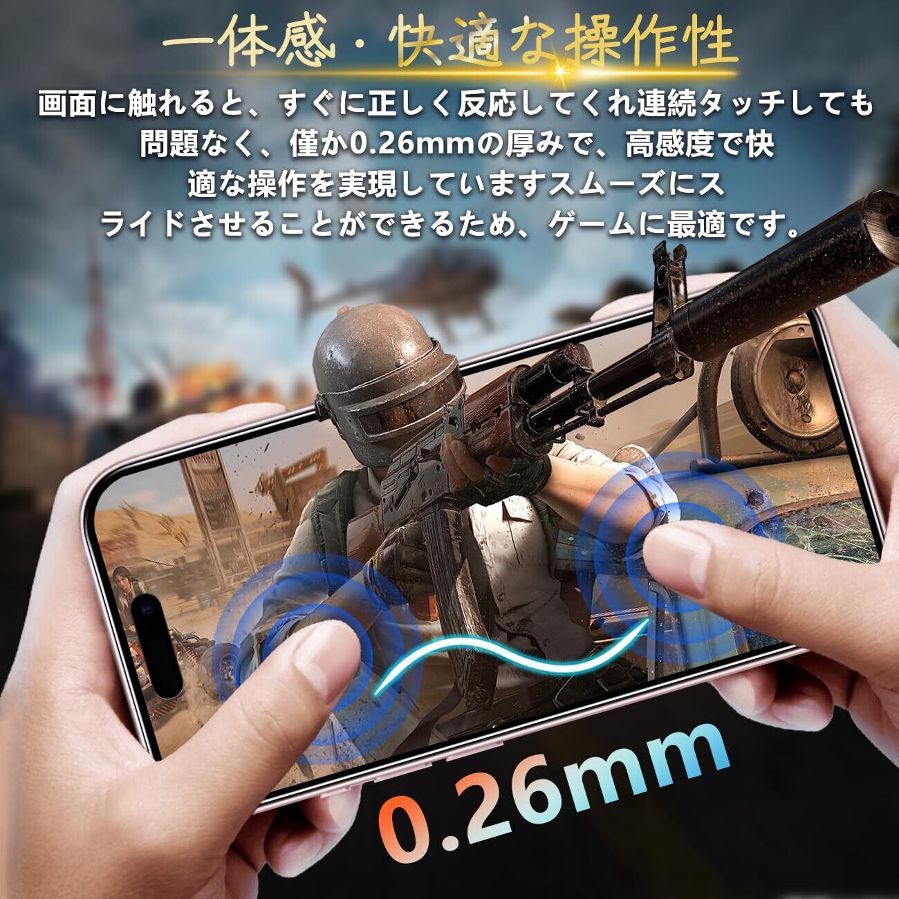 【汚れ防止&指紋防止 / 防水 / 耐油性】 保護フィルム は、石材ナノコーティング層の最新の指紋防止技術を使用していますので、通常フィルム のようなラフなタッチは一切ありません。画面がさらさらで指紋が付きにくい、高感度で快適な操作を実現することができます。スムーズにゲームプレイ体験できる同時に、長時間に楽しむなどの利点もあります。*万が一付着した指紋、水滴、汗、化粧品などは簡単に拭き取れます。市場に出回っている99%の携帯電話ケースに互換します;強化ガラスのサイズは携帯ケースを取り付けるためのスペースを余裕して、両側が浮き上がらないように確保します。何百もの携帯電話ケースにテストした後、99%問題がなく対応できます。