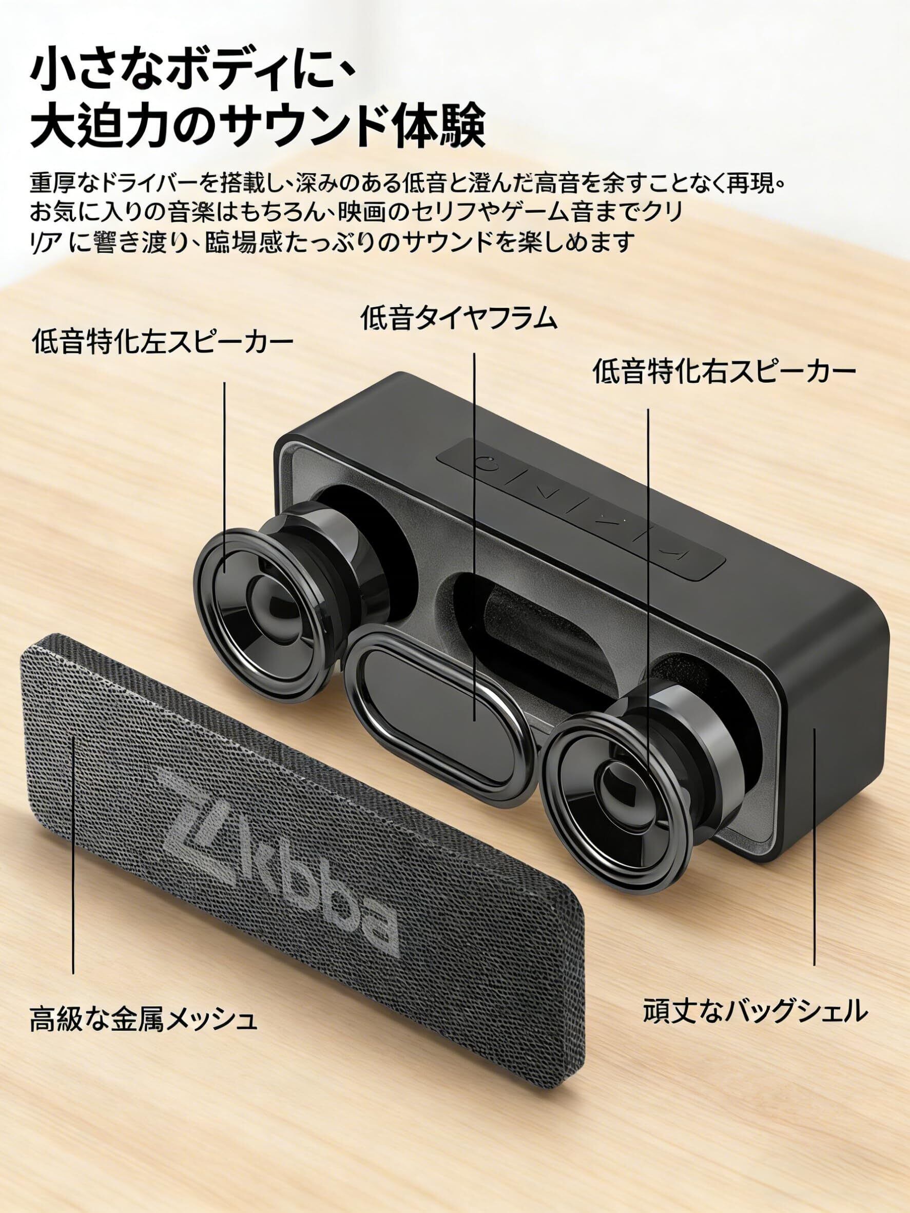 【2026年新モデル】Bluetoothスピーカー ワイヤレススピーカー HiFi音質 大音量 強化低音効果 Bluetooth5.3 IPX7防水 Type-C充電 長時間駆動 ハンズフリー通話 内蔵マイク TWS機能 2台同時接続対応 超軽量 ポータブル コンパクト設計 スマートフォン/PC/車載/浴室/アウトドア対応 日本語説明書付属 ブラック