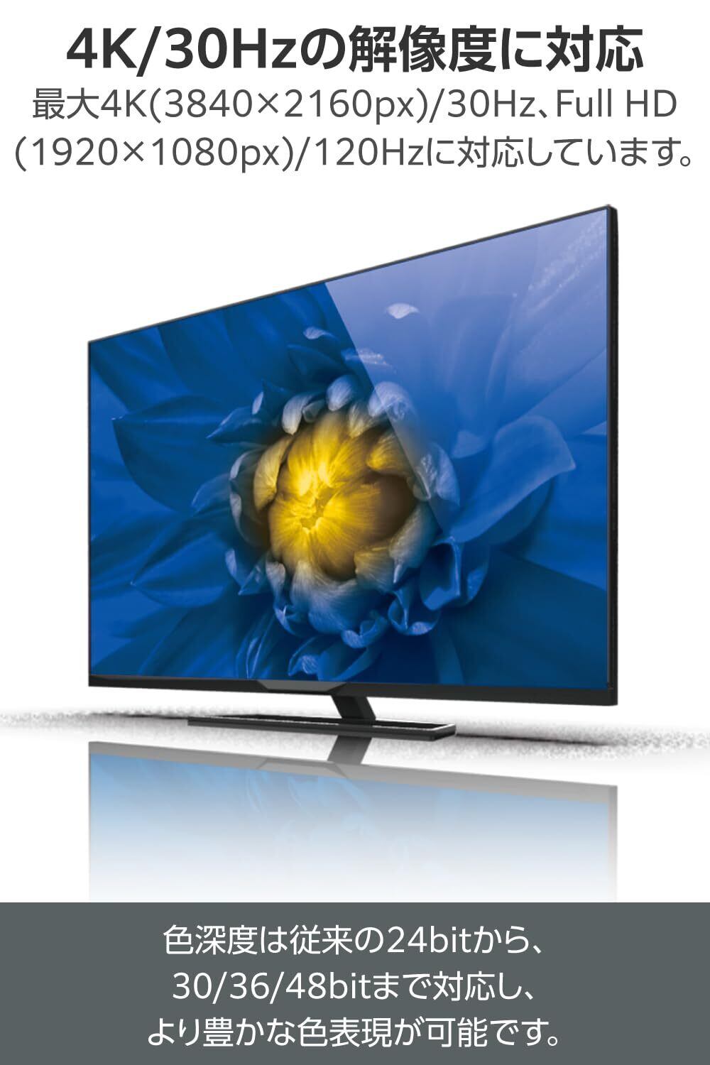 最大4K(3840×2160px)/30Hz、Full HD(1920×1080px)/120Hzの解像度に対応しています。