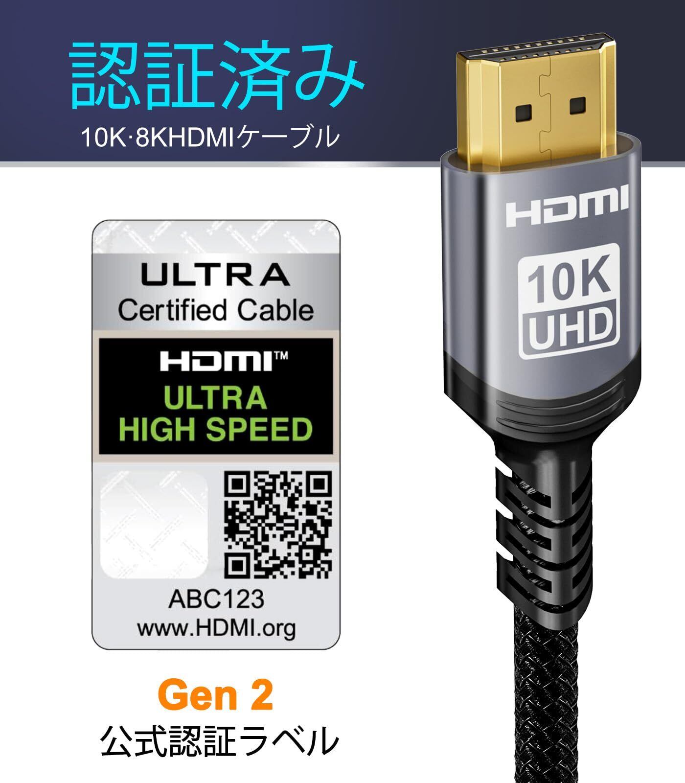 Sniokco 10K 8K HDMI 2.1ケーブル 2M、認証済み48Gbps超高速HDMI®ケーブル、0.01ms、4K 240Hz / 165Hz / 120Hz、8K 60Hz、eARC、Netflix、HDCP 2.3 / 2.2、DTS:X、HDR10+ 対応、テレビ・モニター・プロジェクター・Roku・Sky-Q・PS5・Xbox対応