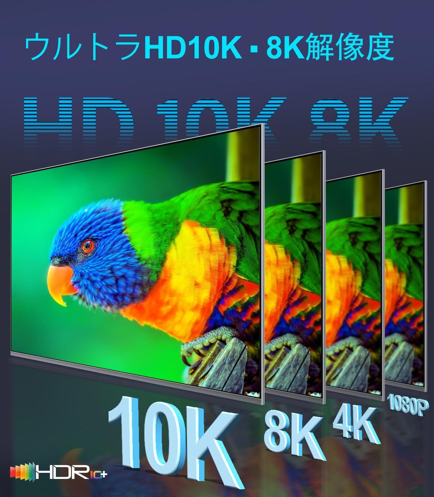 HDMI 2.1認証済みケーブル: この8K HDMIケーブルはHDMI 2.1の認証を取得しています。8K@60Hzおよび4K@240Hzの高解像度に対応し、4K@60Hzの4倍の画質を実現します。先進技術により、映像の鮮明さとシャープさが大幅に向上しています。