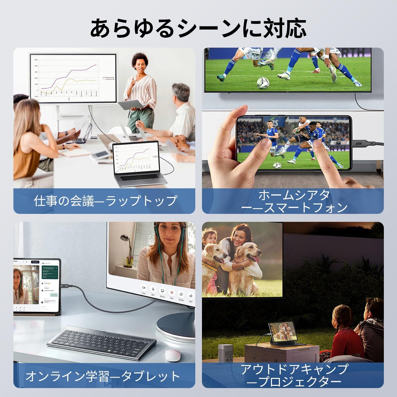 【設定不要】このType-C to HDMIケーブルは、追加のソフトウェアやドライバー不要で、モニター、テレビ、プロジェクターに接続するだけで、オンライン会議、授業、ライブ配信時にも、ティアリングやちらつきのないスムーズな映像をお楽しみいただけます。