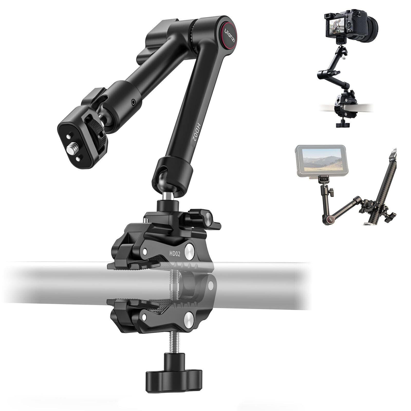 【堅牢性と耐久性】ULANZIマジックアームクランプマウントは、高強度アルミニウム合金とステンレススチール製で、滑り止め補強用のゴムパッド、1/4インチ+位置決めピンを備え、取り付けが簡単で、たわみに強いです。最大耐荷重は3kg。屋外でのビデオ制作や外出先での写真撮影に最適です。