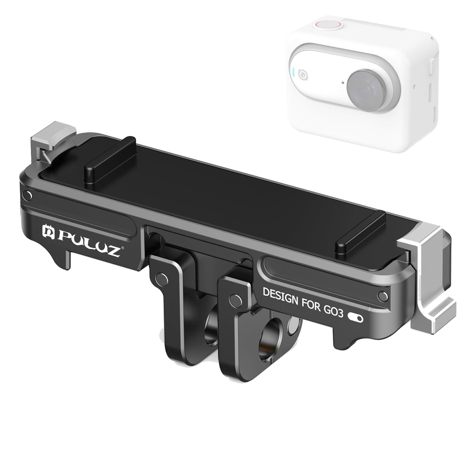 【対応機種】Insta360 GO/GO 3Sカメラに対応、磁力とアルミニウム合金の爪留め具でしっかり固定、滑り止めの衝撃吸収シリコンスペーサーが本体とベース間の摩擦を高め、衝撃を緩和します。
