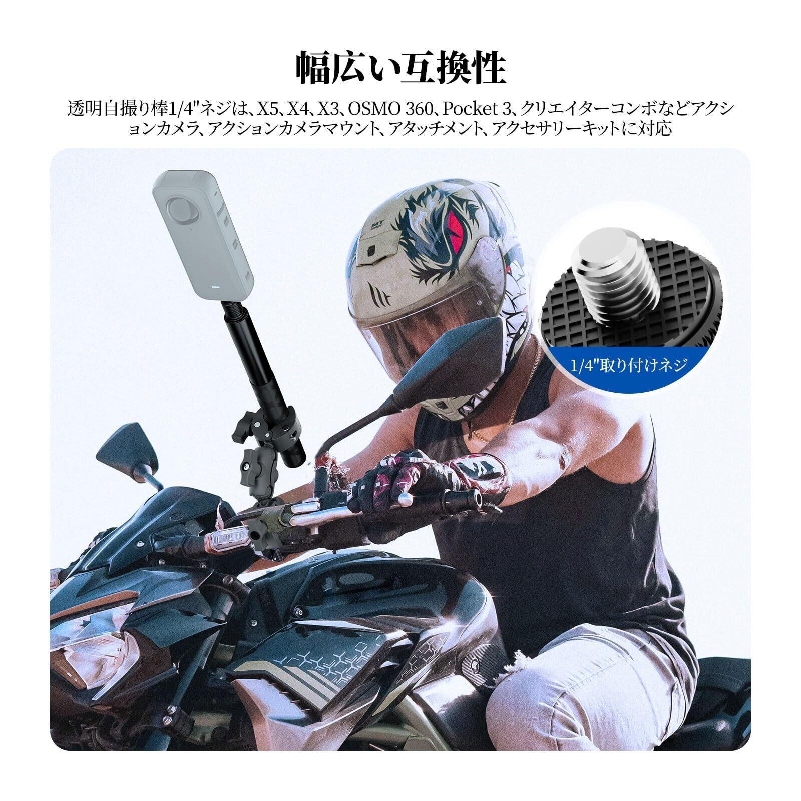 【1/4"汎用な互換性】1/4"ネジ付き目に見えないバイク用自撮り棒は、X5、X4、X3、OSMO 360、Pocket 3、クリエイターコンボなどアクションカメラ、アクションカメラマウント、アタッチメント、アクセサリーキットに対応します。