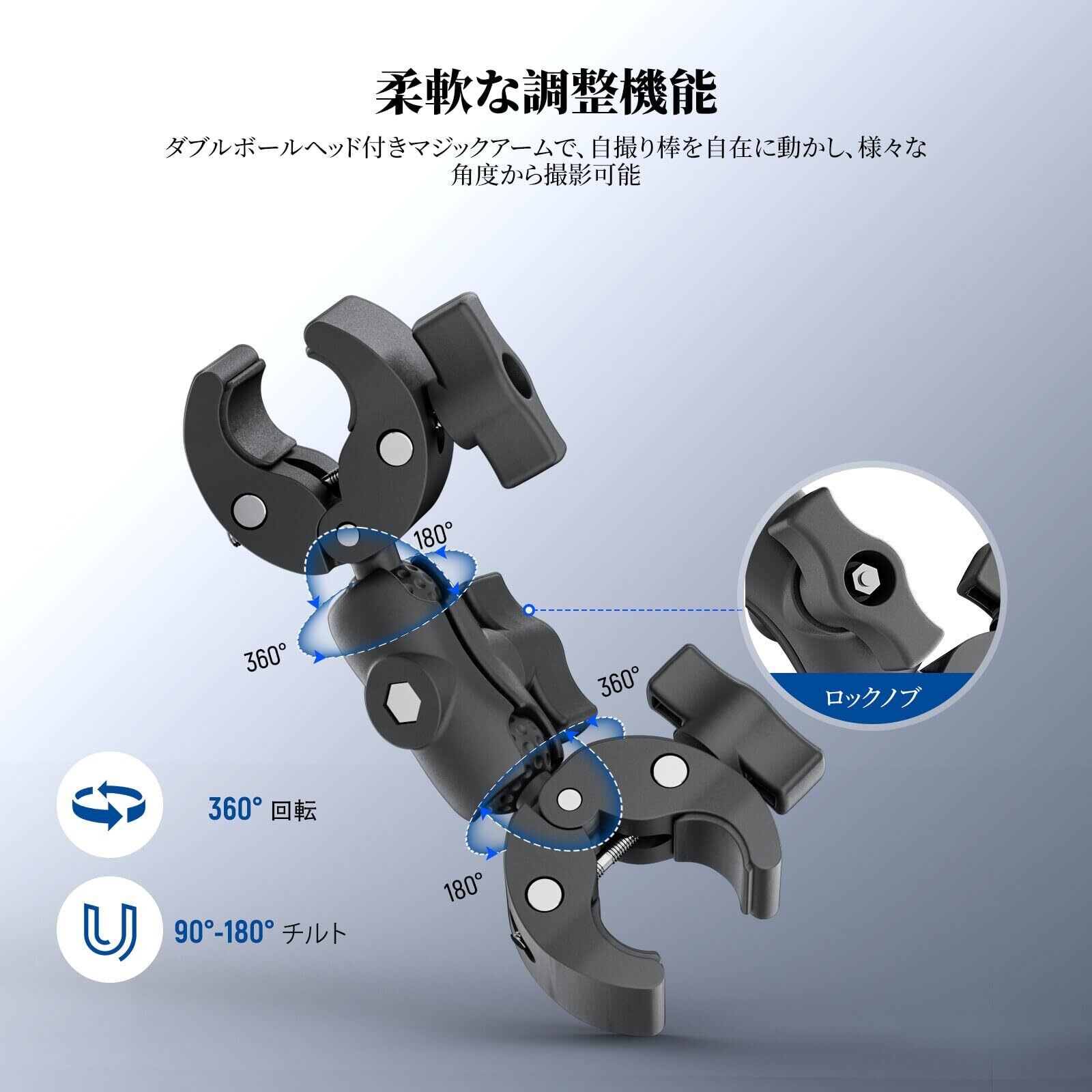 【自転車&バイクマウントキット】ポータブル自撮り棒ポールと2つスーパークランプマジックアームが付属し、アクションカメラで走行中に安定した没入感あふれるPOV動画を撮影できます。