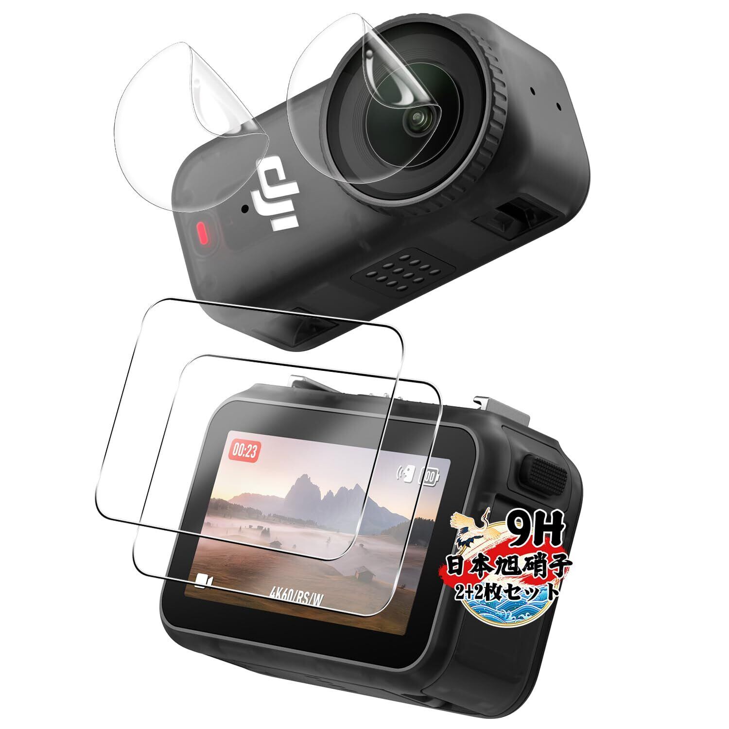 【特価セール】対応 DJI Osmo Nano 保護フィルム ガラスフィルム 2枚 + TPU レンズフィルム 2枚 【4枚セット】 Osmo Nano 用の フィルム 強化ガラス 画面保護 カバー 日本旭硝子製 硬度9H 耐衝撃 飛散防止 気泡ゼロ 貼り付け簡単 オズモNano 用の アクセサリー