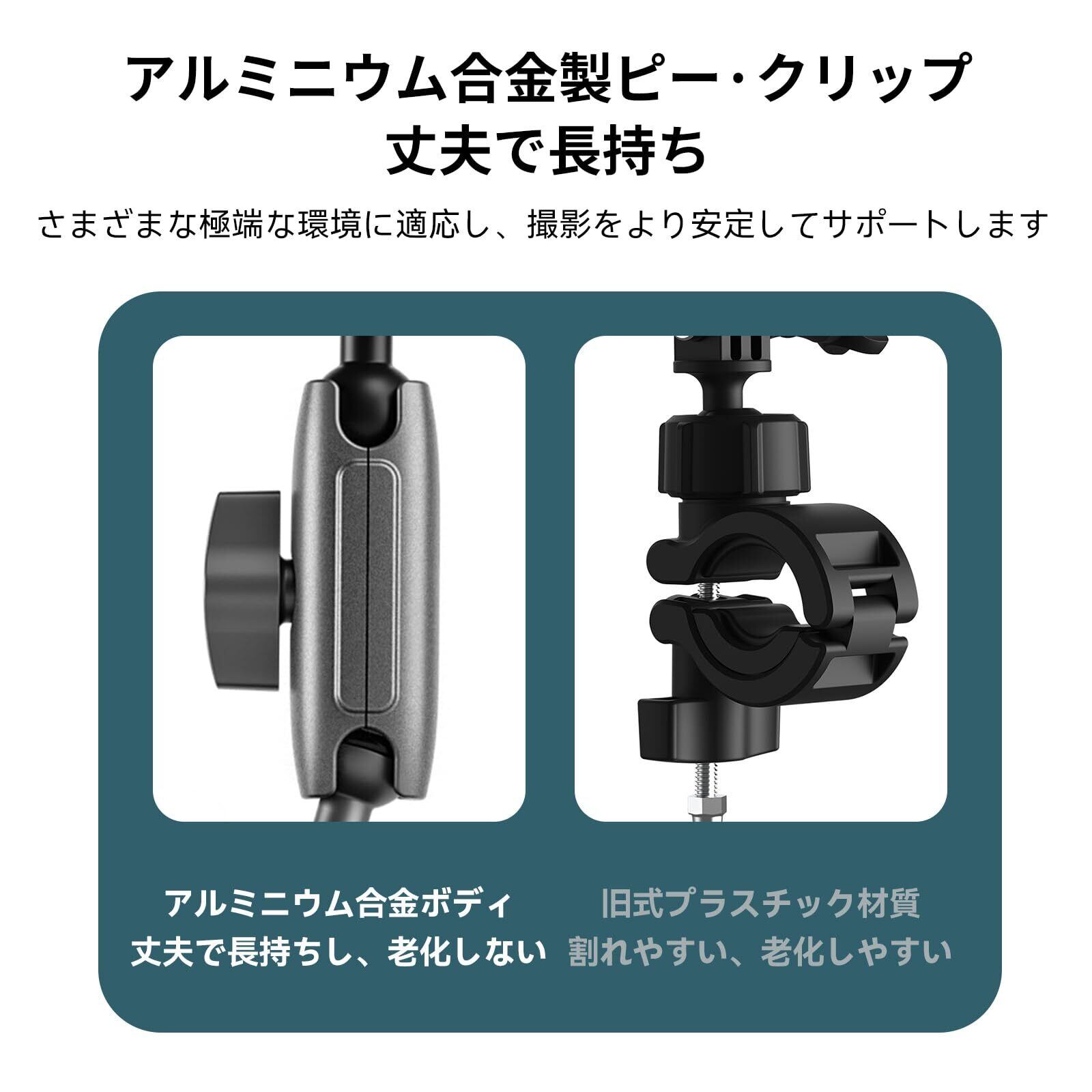 【高品質アルミ合金、丈夫で耐久性】アルミニウム合金エンドウクリップは長持ちする、さまざまな極端な環境に適応する、振動で壊れることがなく、撮影設備の安全を確保する。普通のクランプより安定で、安全で使いやすいです。静的な撮影でも、移動中に乗っての撮影でも、しっかりとしたサポートを提供できます。