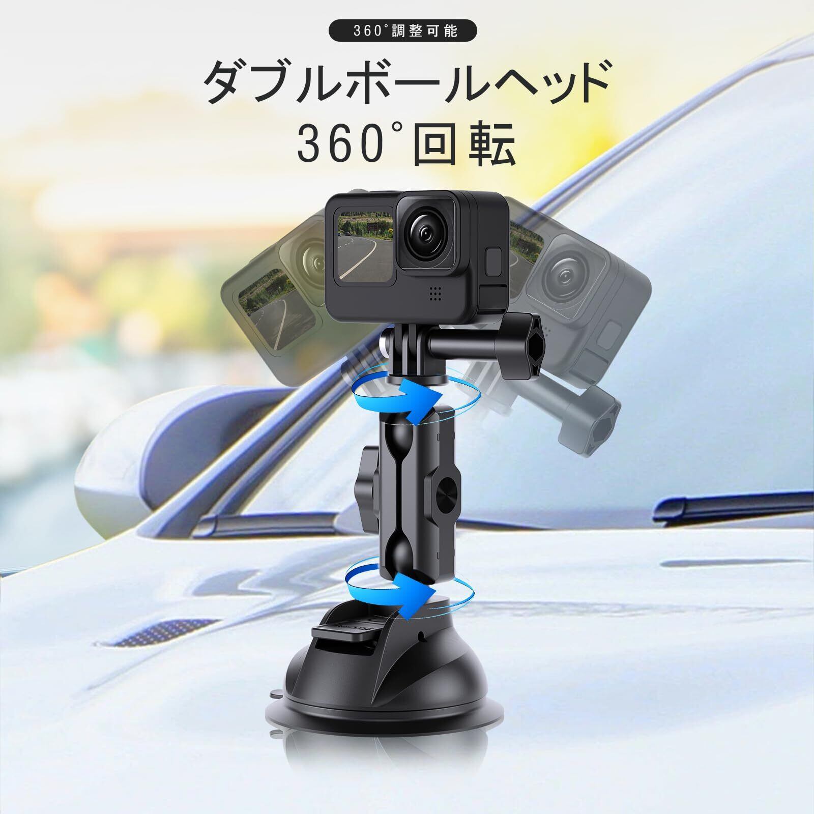 強力な吸盤&360°調整:吸盤は弾性樹脂製、大きな吸引力、本製品にはボールヘッドが付いているので 360度回転することができます。さまざまな使用シナリオや撮影ニーズに応じて角度を調整できます。